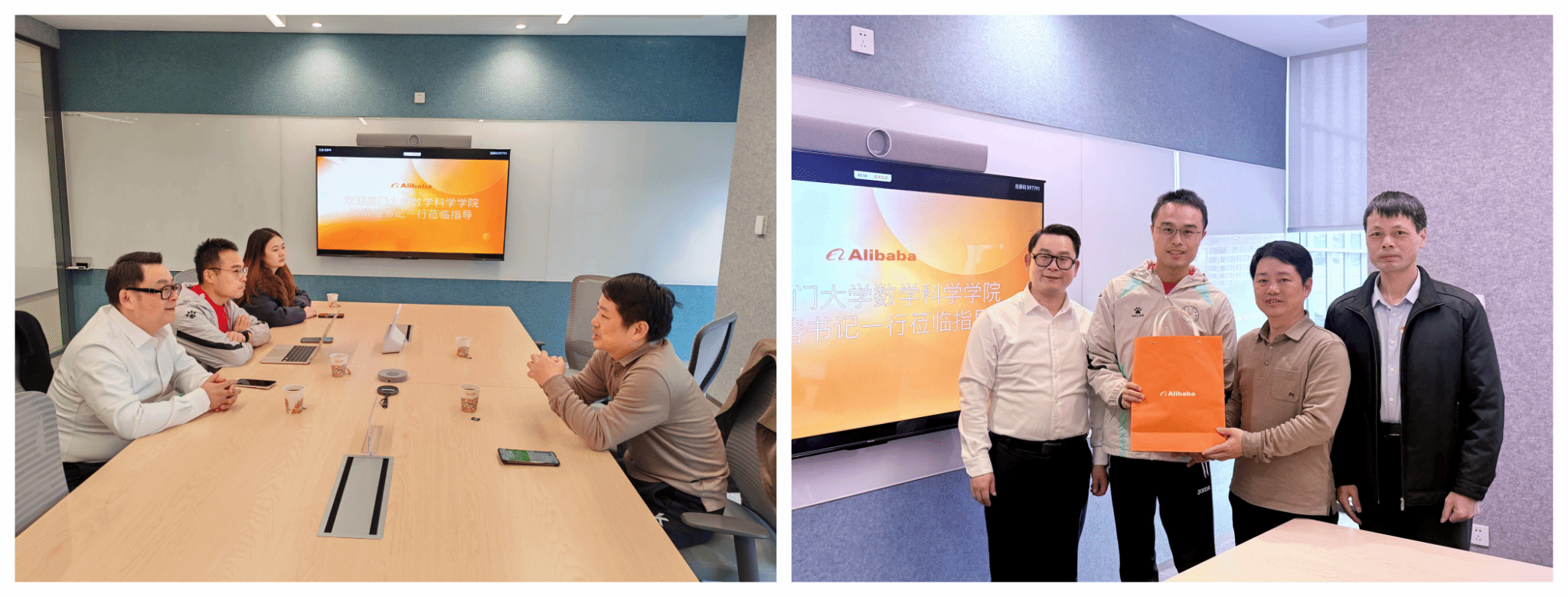 1月12日,张清榕书记带队前往阿里巴巴集团开展访企拓岗工作。阿里巴巴淘宝闪购政府事务部总经理吴伯翔,政府事务部研究中心副主任、2013级数学校友王越,国际数字商业商家运营专员、2021级数学校友张点诺陪同考察座谈。工作组首先走进阿里巴巴党建馆,深入了解他们通过“党建+业务”“党建+数字化治理”等模式,打造“红色引擎”工程、数字化党建平台及党员先锋岗等特色实践,并现场体验数字化应用场景。随后,双方围绕推进校企合作,助力学生成长等主题展开座谈交流。张清榕书记简要介绍了学院科学研究、人才培养、毕业生就业等方面情况,希望通过此次交流深化校企合作,拓宽学生社会实践渠道,助力学生实现高质量充分就业。吴伯翔总经理简要介绍了阿里巴巴人才需求、职业发展、企业文化等方面的情况,并就学生知识储备、实践能力培养等方面提出意见建议。王越和张点诺两位校友结合他们的学习工作实践,介绍了他们对学生在职业规划、专业能力提升、课程教学优化、实践锻炼等方面的感悟,并表示愿意通过校友分享会、开设线上校友学堂等形式,为数学学子提供职业指导和经验分享,帮助他们成长成才。