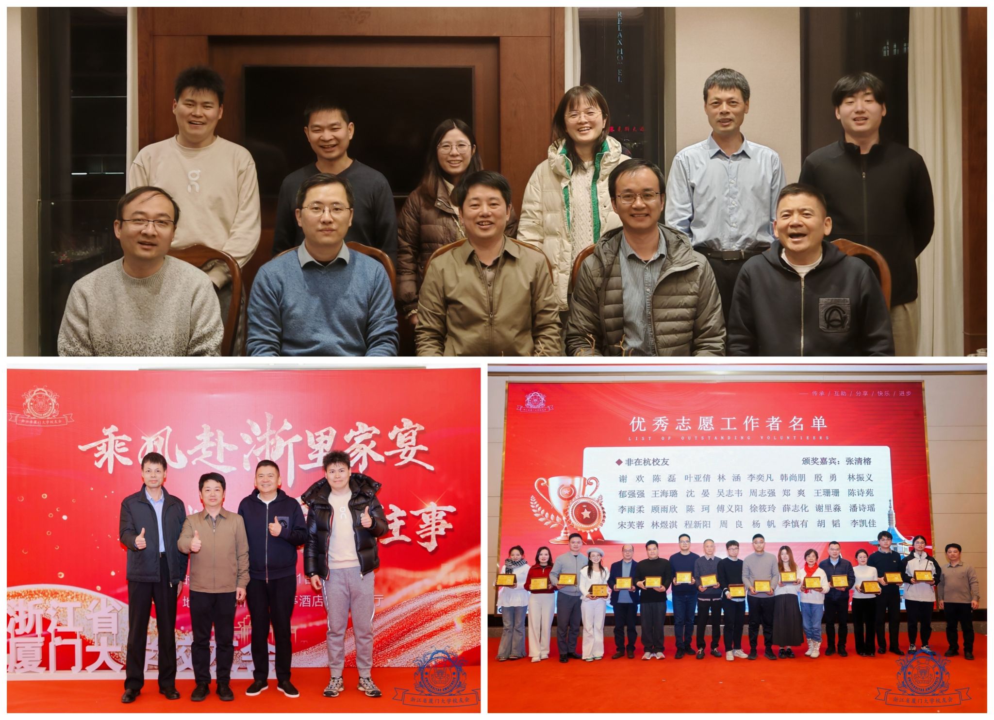 为广泛联络校友,凝聚发展合力,1月11日,数学科学学院党委书记张清榕带队看望从事科技、银行、制造业等行业浙江数学校友代表,并应邀出席浙江省厦门大学校友会2025年会。厦门大学江苏校友会副会长、南通校友会会长、长三角地区数学校友分会秘书长、1991级校友吴斌专程从南通赶赴杭州陪同参与活动。学院副院长宋翀、陈黄鑫、周达等参加看望活动。张清榕书记对校友长期以来对母院的关心支持表示衷心感谢,并热情邀请校友常回母院交流指导。他希望与广大校友共同努力,携手推进各地数学校友分会的筹建工作,以更好地增进校友之间联络,广泛团结校友力量,共同为学院学科建设、人才培养等事业发展提供支持。校友们表示,将持续深化与学院的互动联系,心系学院发展,积极为学院建设贡献力量。在浙江省厦门大学校友会2025年会上,张清榕书记受邀为浙江省校友会非在杭优秀志愿工作者颁发奖牌。