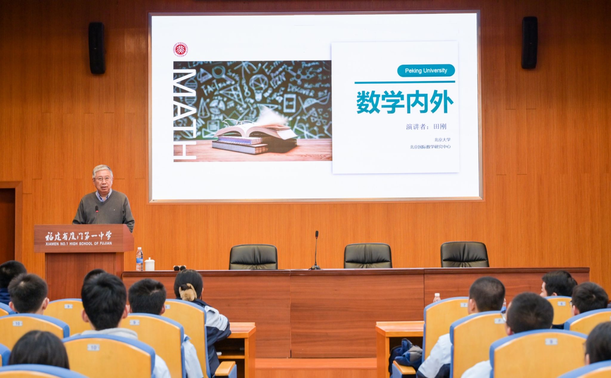 为进一步支持厦门一中加强数学人才培养,坚定学生学科志趣,2026年1月22日,学院邀请国家天元数学东南中心学术委员会主任、中国科学院院士田刚,为厦门一中师生作题为《数学内外》的主题讲座,学院党委书记张清榕、院长夏超、副院长宋翀以及厦门市陈景润科学基金会理事长陈由伟陪同出席。