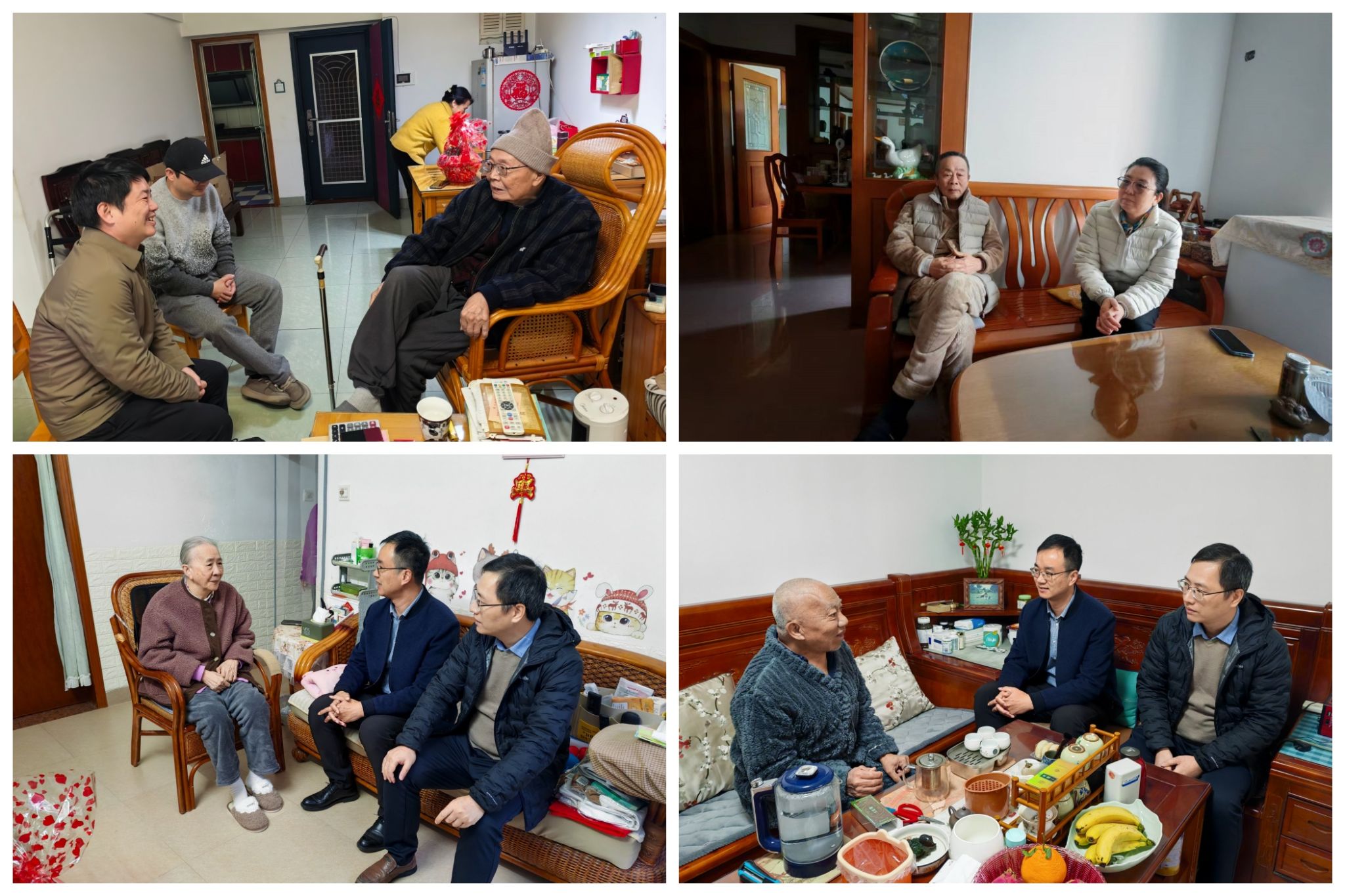 慰问组走进退休老同志家中,详细询问他们身体健康状况与日常生活情况,简要介绍了学院过去一年在党建思政、学科建设、人才培养、队伍建设、科学研究、对外交流、社会服务及校友工作等方面取得的成效,感谢他们对学院事业发展的关心与支持,希望他们注意日常保健,保持乐观心态, 继续以多种方式为学院建设发展献计出力。
