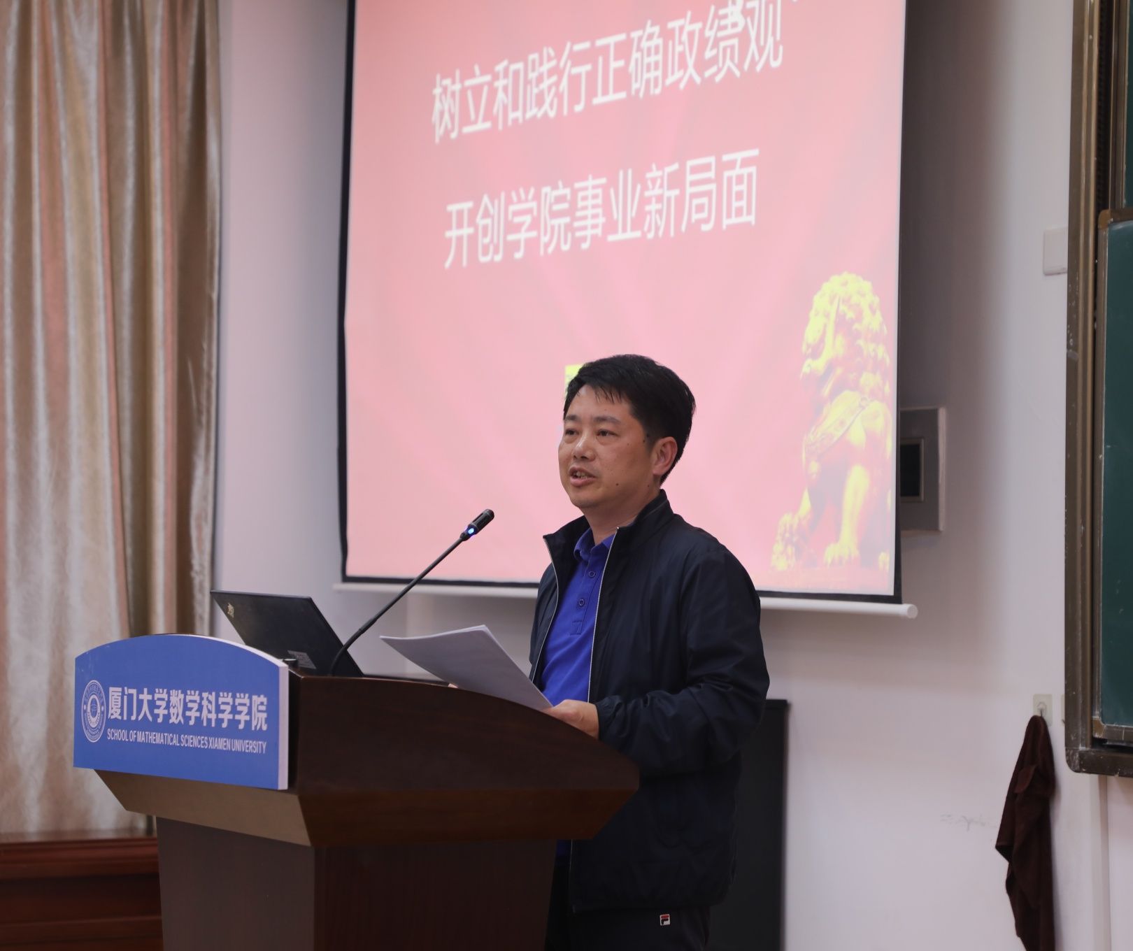 张清榕书记结合学院“十五五”规划重点目标与任务,为全体教职工讲授题为《树立和践行正确政绩观 开创学院事业新局面》的微党课。他从“为什么要树立和践行正确政绩观、树立什么样的政绩观、怎样树立和践行正确政绩观”三个层面,阐述了树立和践行正确政绩观的重要意义与深刻内涵,并结合学院发展实际,分析了当前数学学科发展面临的战略机遇与严峻挑战。他强调,有为才有位。学院要成为一流大学建设中不可替代的战略基石,必须进行涉及人才培养、学术生态、学院文化的深刻变革,实现从“学科导向”向“问题导向”,从“独立发展”向“交叉融合”主动转变。一是在服务国家战略需求上,要立志从跟踪、并跑,到在若干方向实现引领,为中国数学发展贡献厦大智慧;二是在服务学校“双一流”发展上,要努力为全校理科发展、工科突围、医科创新乃至新文科建设提供坚实支撑,成为学校“双一流”建设不可或缺的重要力量;三是在学科自身建设上,要着力构建一个“基础顶天、应用立地”的健康生态,让基础研究学者能心无旁骛探索真理,应用数学专家能扎根沃土创造价值。