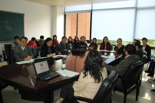 本次座谈会由概率论与数理统计系主任刘继春教授主持。首先刘继春教授对吴启宏教授一行的到来表示热烈地欢迎。然后林亚南院长发表了激情洋溢地讲话并就我院概率论与数理统计系的现状进行了详细地介绍,林院长表示对我院概率论与数理统计系的发展充满了信心。接着统计大会秘书余司帆女士为为参与本次座谈会的师生详细介绍了即将于2013年在香港举行的国际统计学会第59届世界统计大会的有关事宜,并且欢迎我院师生积极参加。最后我院师生踊跃提问,对即将召开的世界统计大会表现出了浓厚的兴趣。