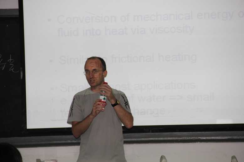 Jonathan Wylie教授就一类在光学纤维和纺织工业制造过程中有着广泛用途的粘性线拉伸展开讨论,介绍了粘性加热对粘性线拉伸的影响、辐射性热源给粘性线拉伸所带来的不稳定性,并通过分析一个渐进极限的Navier-Stokes模型提出一个描述这种不稳定性的本质并解释这种违反直觉的行为的理论。
