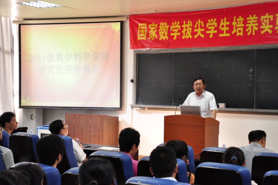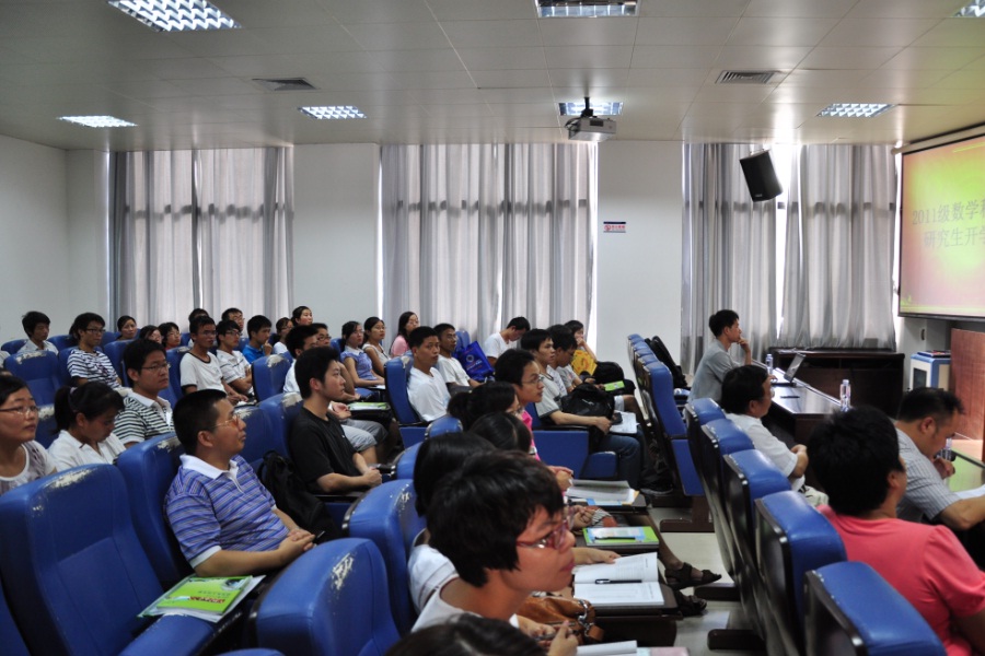 2011年9月13日,数学科学学院2011级研究生开学典礼于海韵园实验楼105室召开。院长林亚南教授、副院长许传炬教授、党委副书记谭忠教授、党委副书记郑诚明老师和教学秘书林智雄老师出席了开学典礼。2011级硕士博士新生齐聚一堂,共同迎接崭新生活的开始。典礼由黄兆君老师主持。