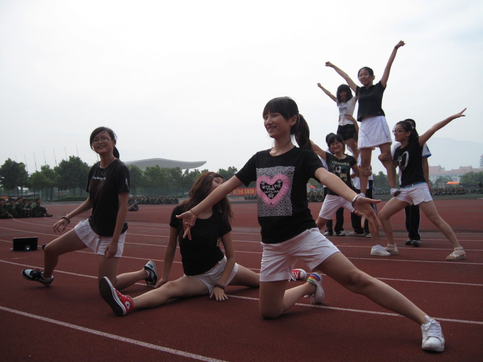两位领导讲话完毕后,09级同学带来了3个娱乐节目——男生自弹自唱,女声合唱和啦啦操表演,受到了10级新生的热烈欢迎。