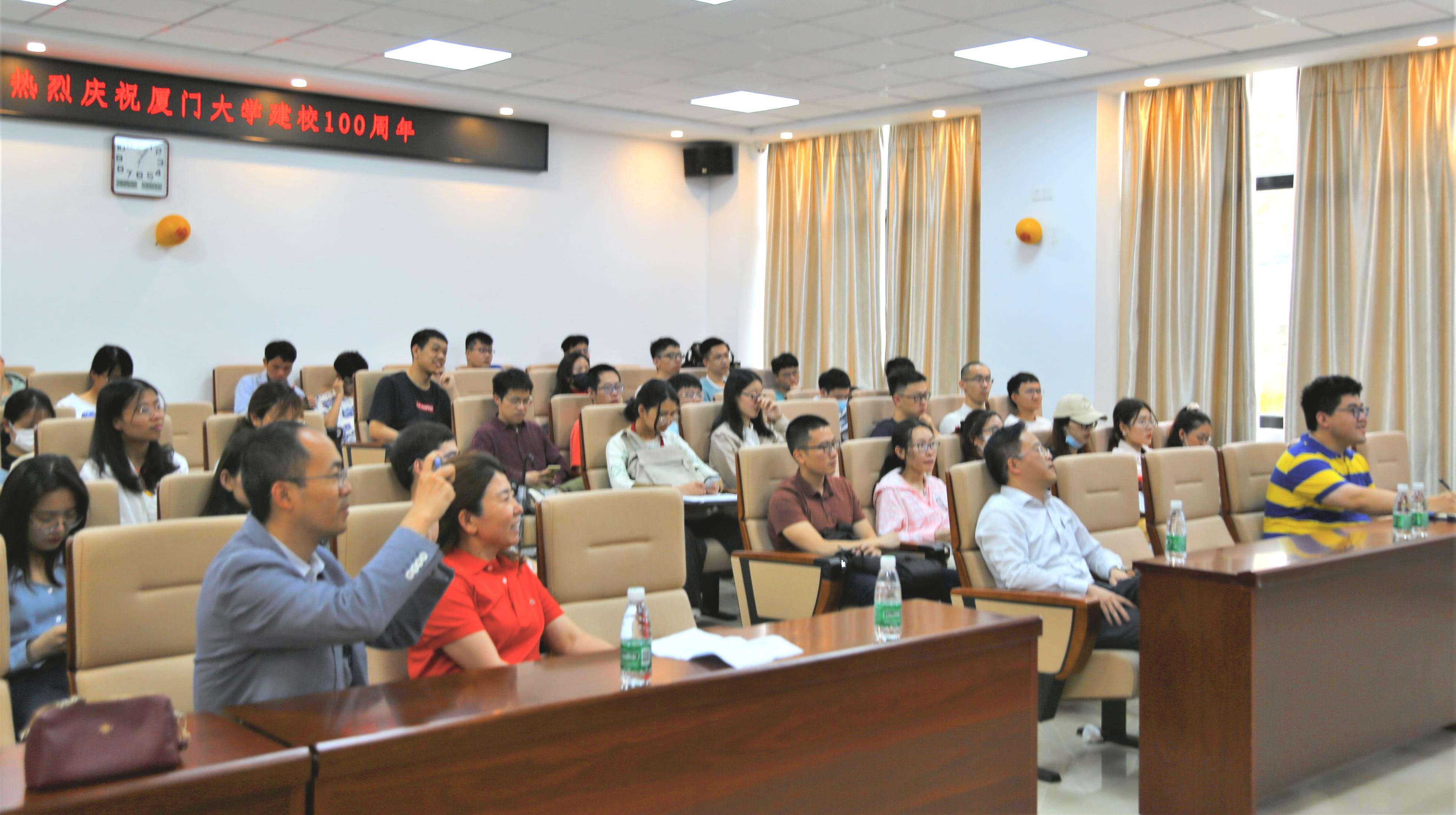 为深入开展党史学习教育,学习贯彻习近平总书记致厦门大学建校100周年贺信精神、在清华大学考察时的重要讲话精神,4月25日,数学科学学院党委特别邀请中国人民解放军海军某部政治工作处副主任石稷弦在海韵园实验楼105作《从逆境走出的胜利之师——从党史中汲取前进的智慧和力量》党史学习教育专题讲座。学院党委书记黄宝秋、党委副书记丁昌利、团委书记于正伟、团委副书记陈淑铌、辅导员华盈鑫以及70余名学生党员、入党积极分子代表参加了学习。讲座由学院党委副书记丁昌利主持。