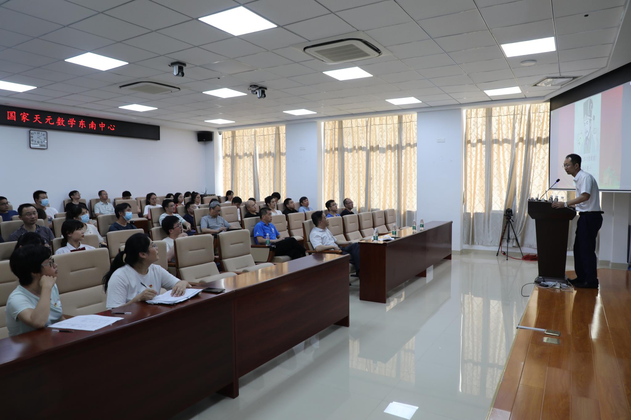 6月3日下午,数学科学学院党委在海韵园实验楼105报告厅举办党史学习教育第二场理论报告会,邀请马克思主义学院副院长张艳涛教授来院作报告。院系领导、党支部书记、支委和师生党员代表参加会议,院党委书记黄宝秋主持报告会。