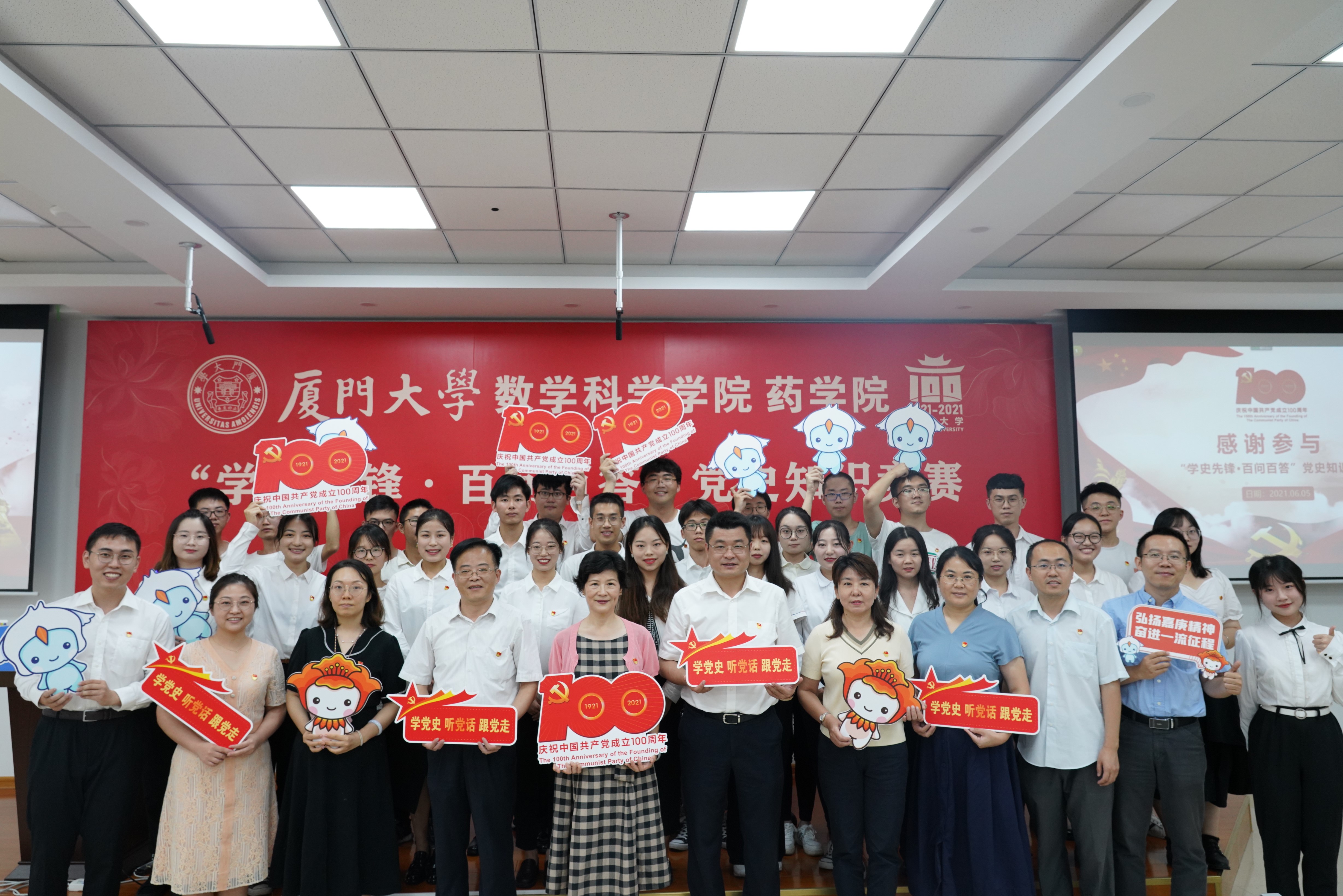 6月5日下午,数学科学学院与药学院在海韵园实验楼106报告厅联合举办“学史先锋·百问百答”党史知识竞赛。校党建巡察员、党史学习教育指导组第四组组长、数学科学学院党建联络员郑冰冰,数学科学学院党委书记黄宝秋,药学院党委书记陈怀锋,数学科学学院党委副书记丁昌利、党务秘书曹璐,药学院党务秘书冯民,数学科学学院团委书记于正伟、团委副书记陈淑铌,药学院团委副书记范荣出席本次活动。活动由数学科学学院硕士基础数学党支部刘畅、药学院本科生党支部郭妙婷主持。