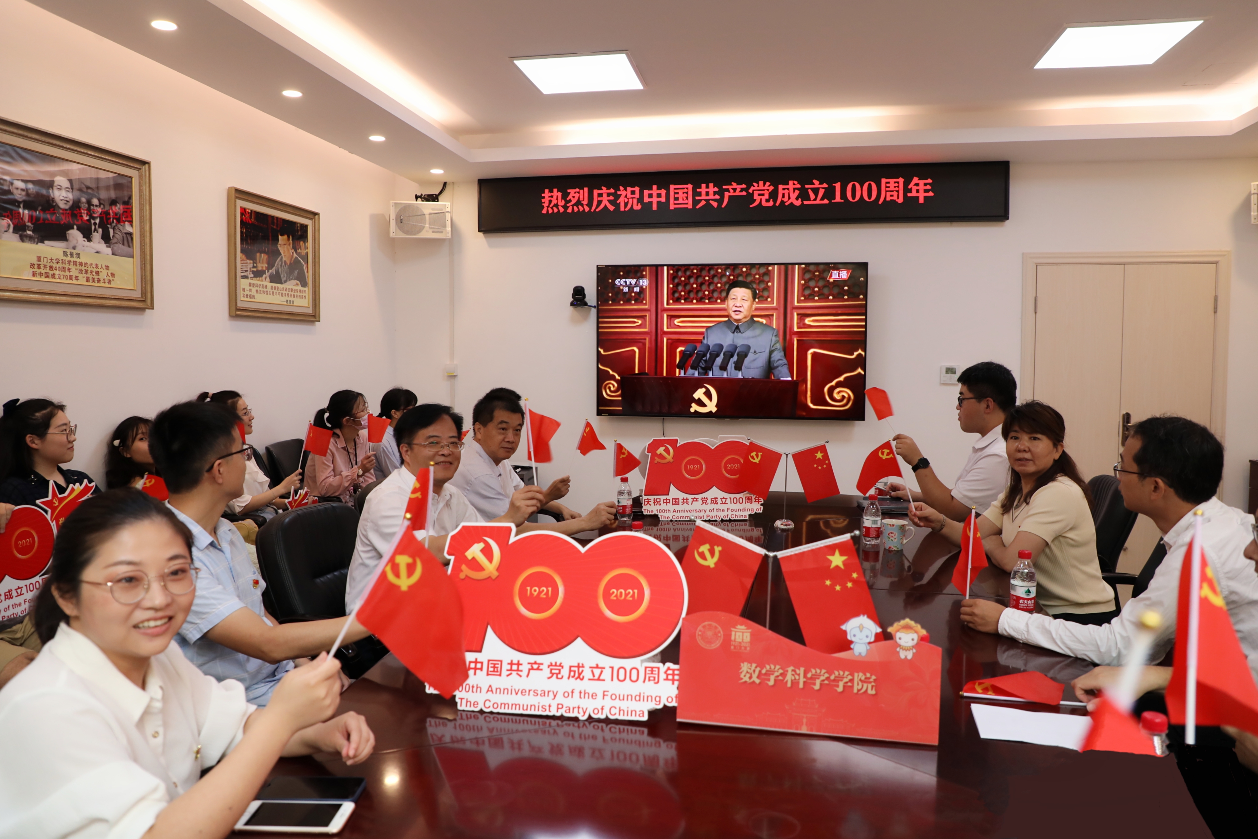 7月1日上午8时,庆祝中国共产党成立100周年大会在北京天安门广场隆重举行。中共中央总书记、国家主席、中央军委主席习近平发表重要讲话。数学科学学院党委组织师生通过电视、网络、手机直播等多种形式收听收看大会盛况,学习领会习近平总书记在庆祝大会上的重要讲话精神,共同回顾中国共产党同人民风雨同舟、生死与共,从胜利走向胜利的伟大征程,共同感悟中国共产党的百年辉煌成就和宝贵经验,激励和动员全院师生更加紧密地团结在以习近平同志为核心的党中央周围,在新百年新征程中奋勇前进。大家纷纷表示,要自觉弘扬伟大建党精神,砥砺初心,践行使命,不负时代,不负人民,为全面建成社会主义现代化强国、实现中华民族伟大复兴的中国梦贡献厦大数学人的力量。