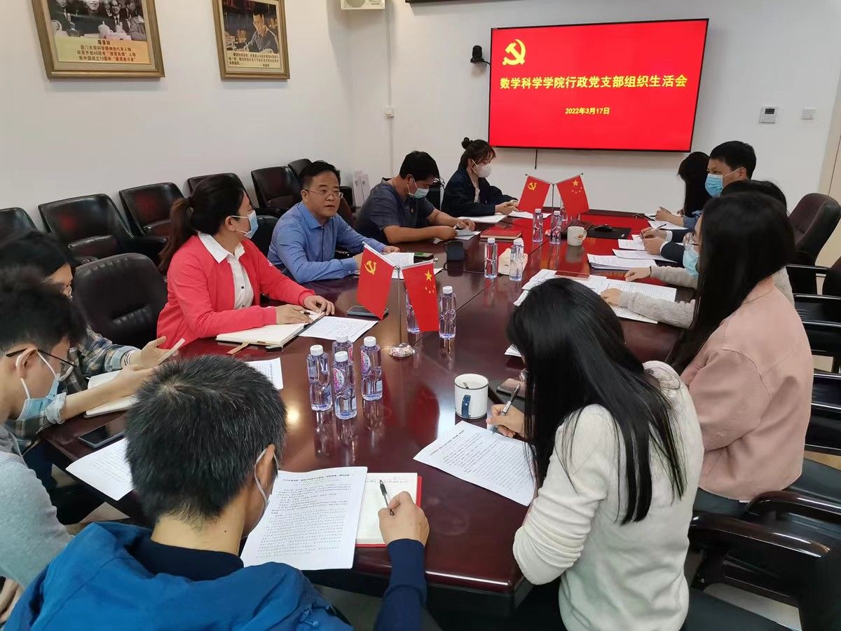 3月17日,学院行政党支部在海韵行政楼B313会议室召开2021年度组织生活会,黄宝秋、毛通双、丁昌利等同志出席会议。党支部副书记陈李媛主持会议。