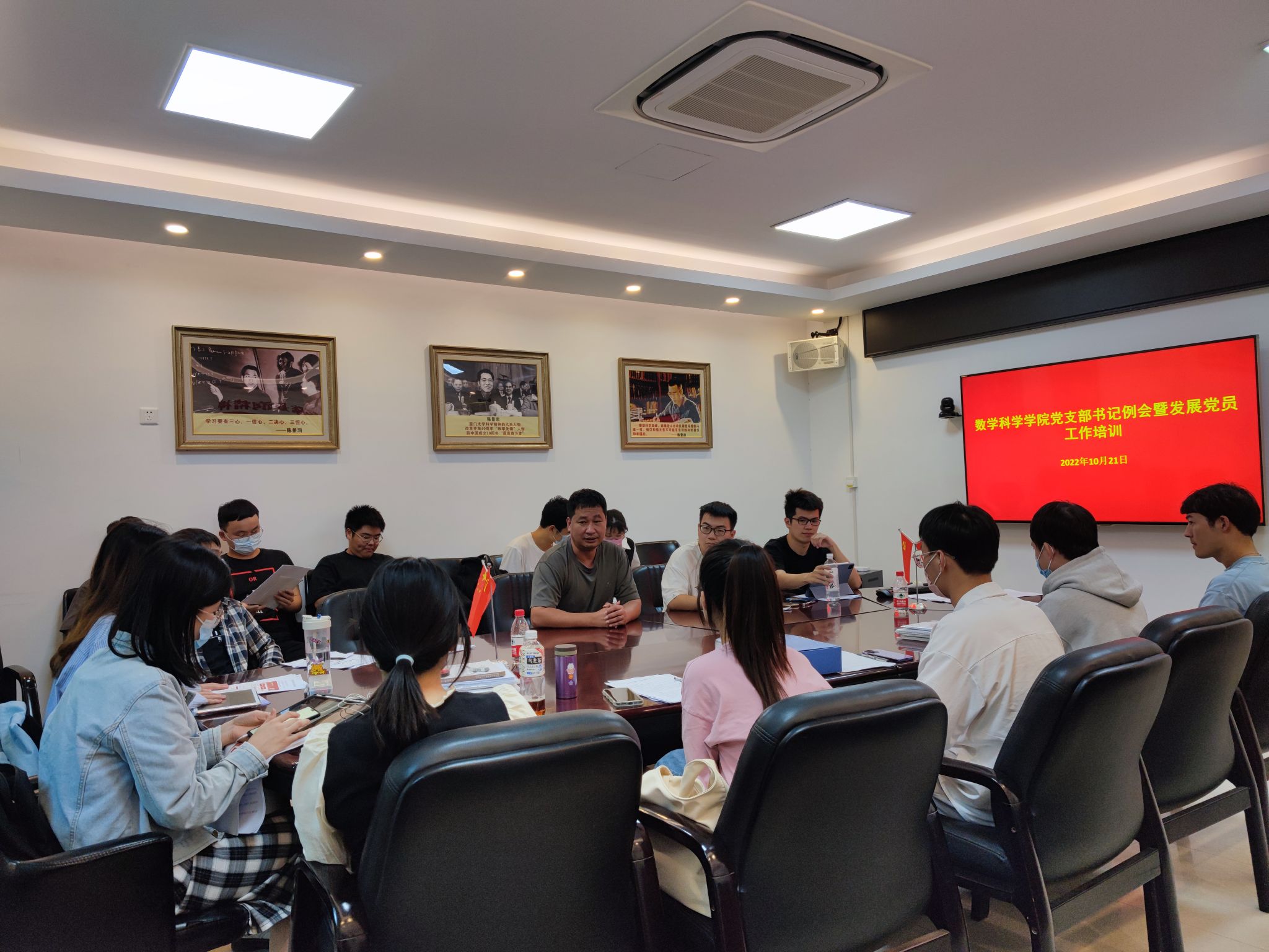 毛通双对党支部近期工作提出三点要求,一是深入学习贯彻党的二十大精神,落实“喜迎二十大、建功新时代”——“数院先锋、红色领航”学习教育活动方案,举办迎接学习宣传贯彻党的二十大精神系列活动,把新时代党的建设总要求落到实处。二是严格做好发展党员工作,落实发展党员培养考察制度,及时跟进校党委关于发展党员工作的最新要求,进一步完善培养发展党员各环节的工作,确保党员队伍的先进性、纯洁性。三是推动党建工作与业务、班级工作融合贯通,创新组织活动方式,增强党支部政治功能和组织功能,发动党员在学院各项工作中发挥先锋模范作用,把支部建成贯彻落实上级组织各项任务部署的坚强战斗堡垒。