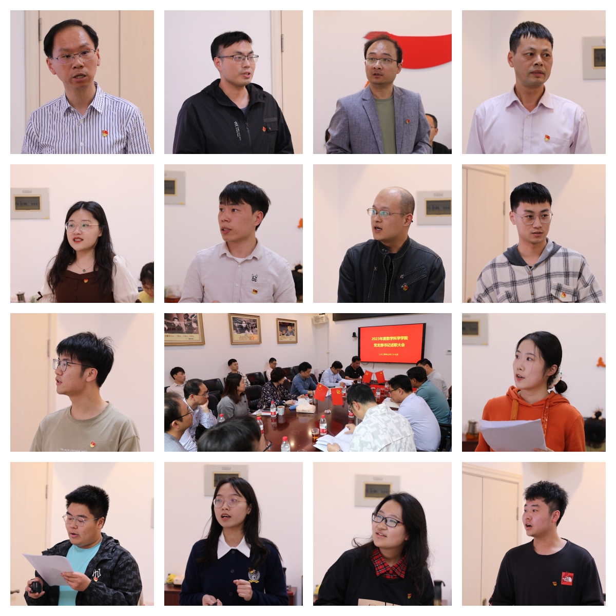 张清榕在总结讲话中强调,严格开展党支部书记述职考核对基层党建提质增效具有重要推动作用,他表示,党支部书记述职考核是落实党建工作责任的有效载体和抓手,建立支部书记述职考核制度以来,学院党建“头雁领航、雁阵齐飞”的态势更加明显,今后学院将着力在突出难点问题牵引、严格规范考核评价、强化考核结果运用等三个方面创新机制,使党支部书记述职考核真正成为推动党建工作创新发展的“利器”。他还简要回顾了2023年学院党建工作情况,认为全体党支部推动党建工作责任到位、落实有力、成效显著,同时也指出学院党建工作仍然存在一些短板和不足。最后,张清榕对党支部工作提出三点意见:一是加强对师生的政治引领和政治吸纳。二是打造上下贯通、执行有力、引领一流的组织体系。三是推进党建与事业发展深度融合。他强调,2024年是中华人民共和国成立75周年,是全面贯彻落实党的二十大精神、承上启下实施“十四五”规划的关键一年,更是数学学科奋进新百年征程的开局之年,全院党支部要以学校第十二次党代会精神为引领,把握机遇、乘势而上,不断探索基层党建工作新理念新思路,推动学院党建工作和各项事业不断迈上新的台阶!