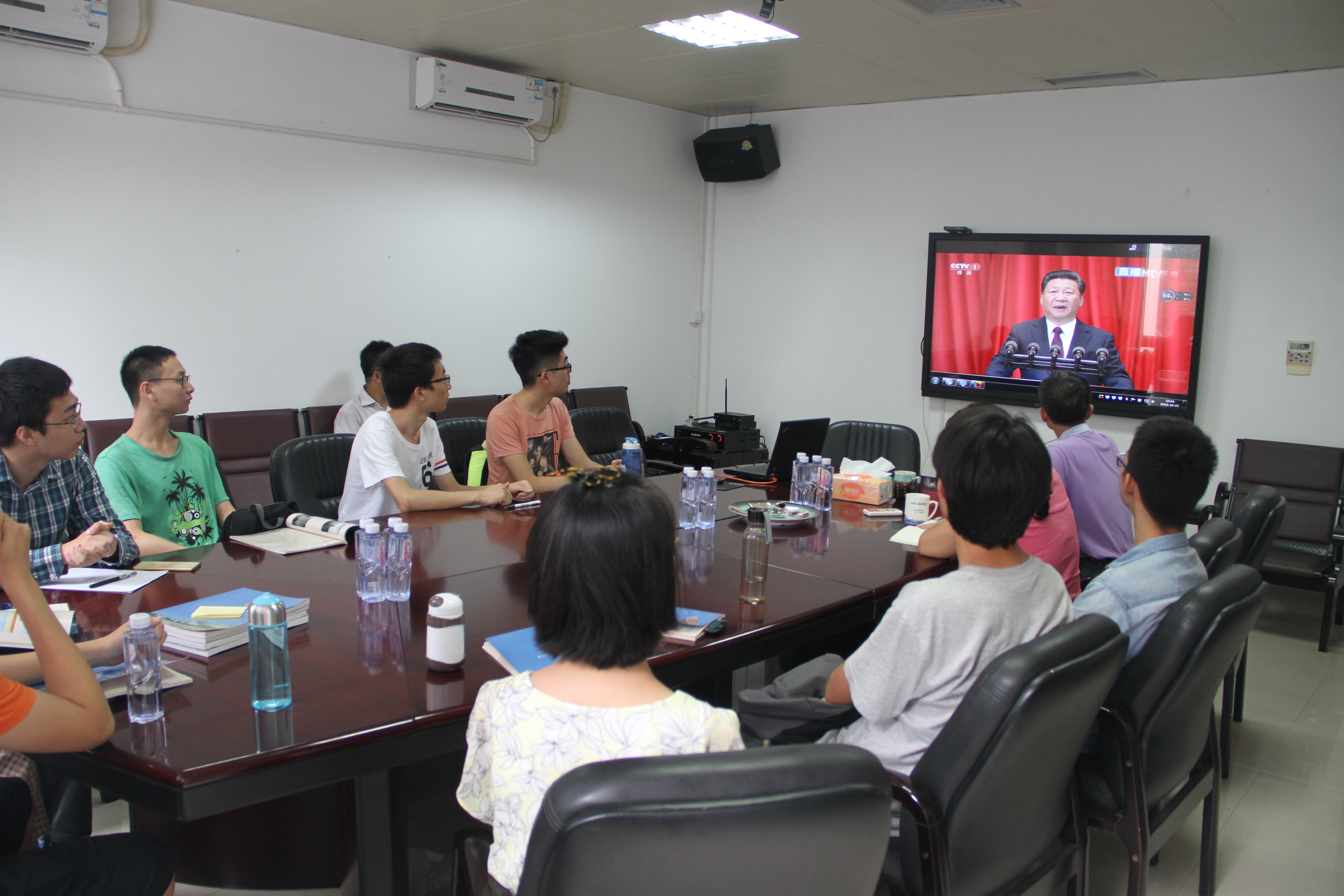学院党委副书记刘宁、教工行政支部全体党员、学生党员代表参加观看和座谈。