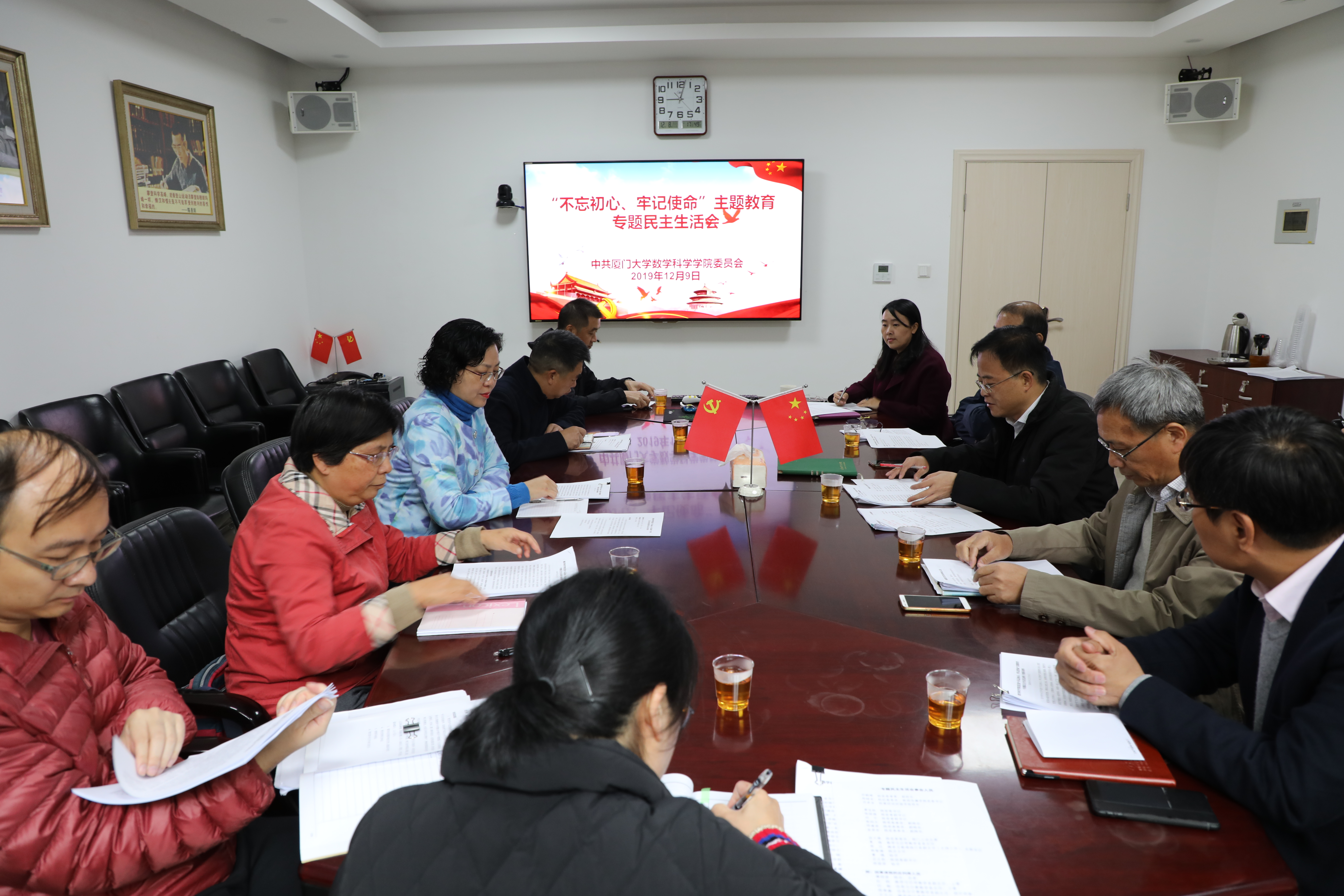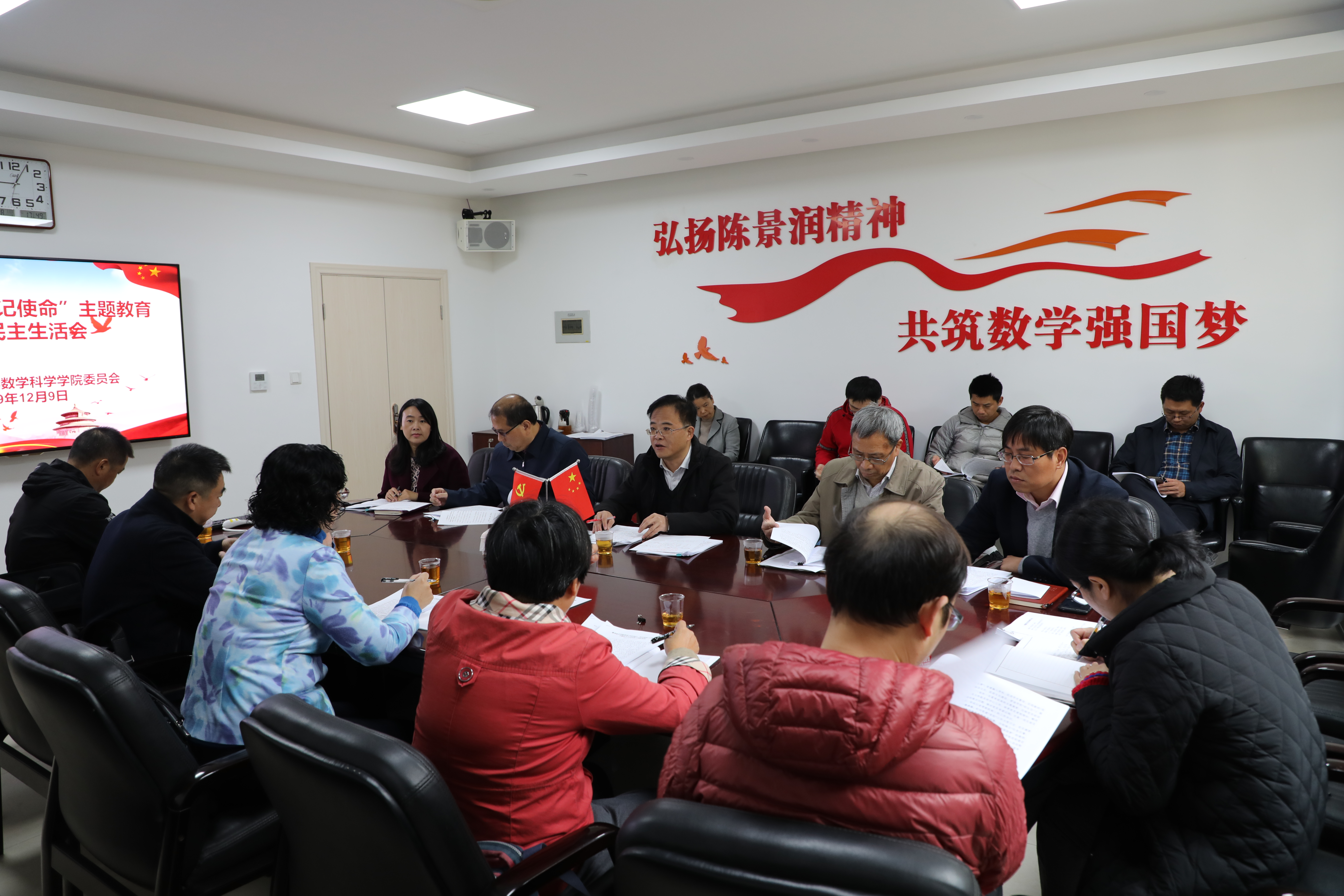 按照校党委关于召开“不忘初心、牢记使命”专题民主生活会的统一部署和要求,12月9日上午,数学科学学院领导班子召开主题教育专题民主生活会。会议聚焦“不忘初心、牢记使命”主题,紧扣学习贯彻习近平新时代中国特色社会主义思想主线,围绕理论学习有收获、思想政治受洗礼、干事创业敢担当、为民服务解难题、清正廉洁作表率的目标,对标对表习近平总书记关于“四个对照”、“四个找一找”的要求,盘点收获、检视问题、深刻剖析,着力解决党内存在的违背初心和使命的各种问题,力戒形式主义、官僚主义,推动班子及成员进一步增强“四个意识”、坚定“四个自信”、做到“两个维护”,更加履职尽责、担当作为,凝聚合力、团结奋进,用初心与使命引领、推动学院党的建设和各项事业迈上新台阶。校党委常委、副校长邓朝晖,校第四巡回指导组组长司卓亚,校纪委委员、新闻传播学院党委书记郑树东参加会议并作点评发言,部门工会主席,系主任、科级干部代表列席会议。学院党委书记黄宝秋主持会议。
