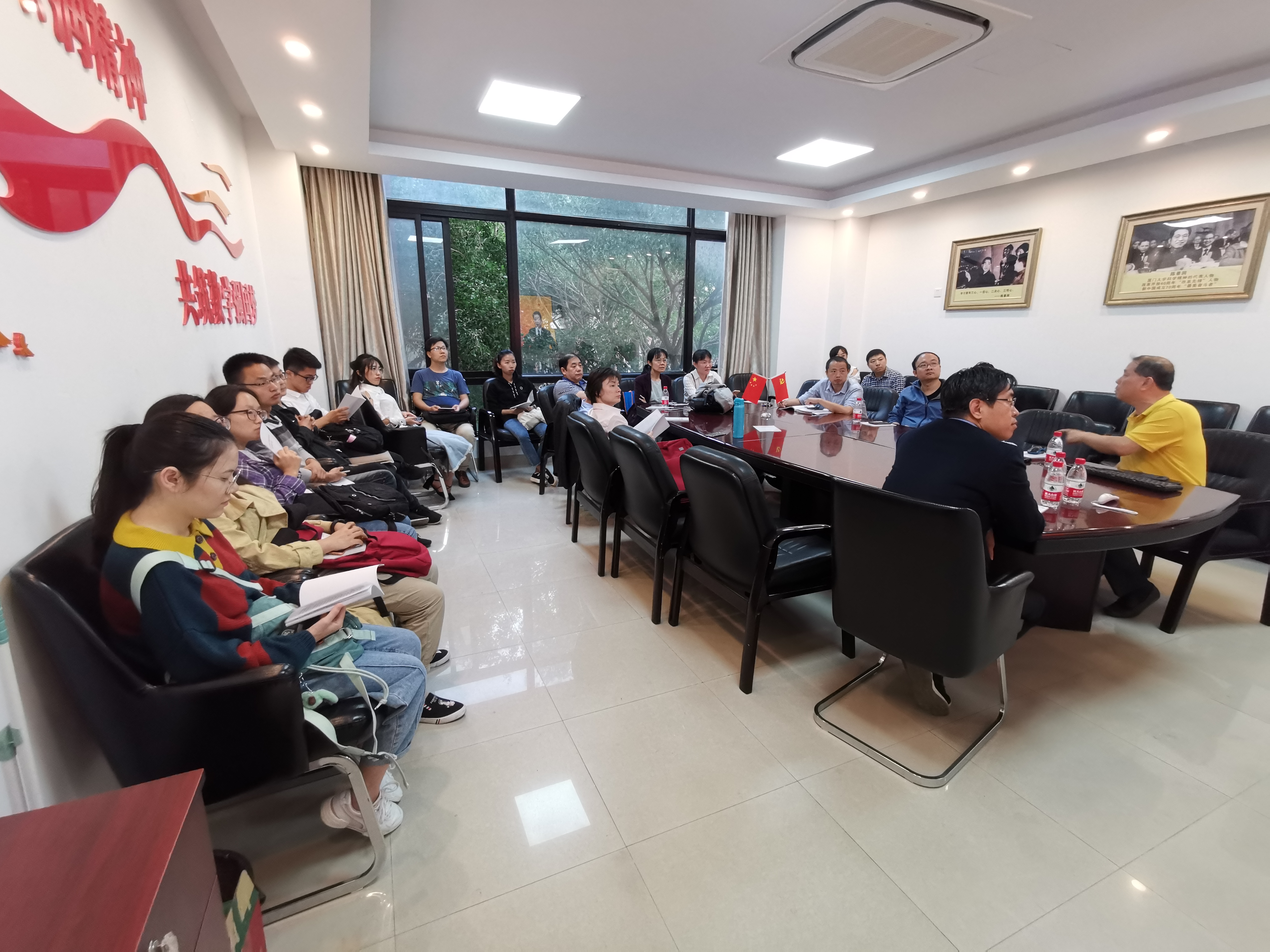 11月13日下午,学院教师第三党支部按照“不忘初心、牢记使命”主题教育方案部署,开展“今后为事业发展贡献什么”主题固定党日+活动,党员认真听取陈国强副书记的主题党课,集中学习研讨中共十九届四中全会的会议精神,围绕今后为事业发展贡献什么进行深入交流。