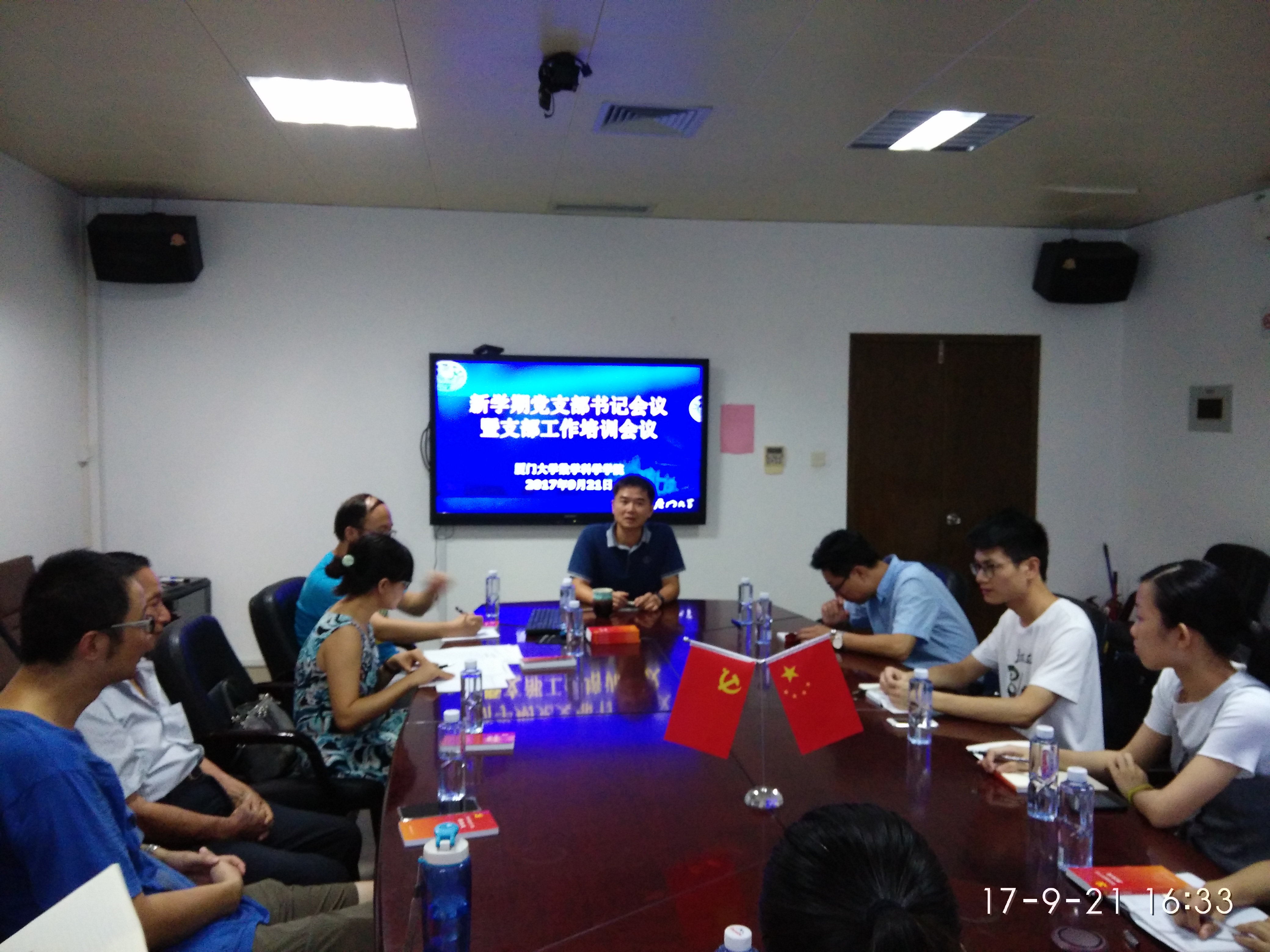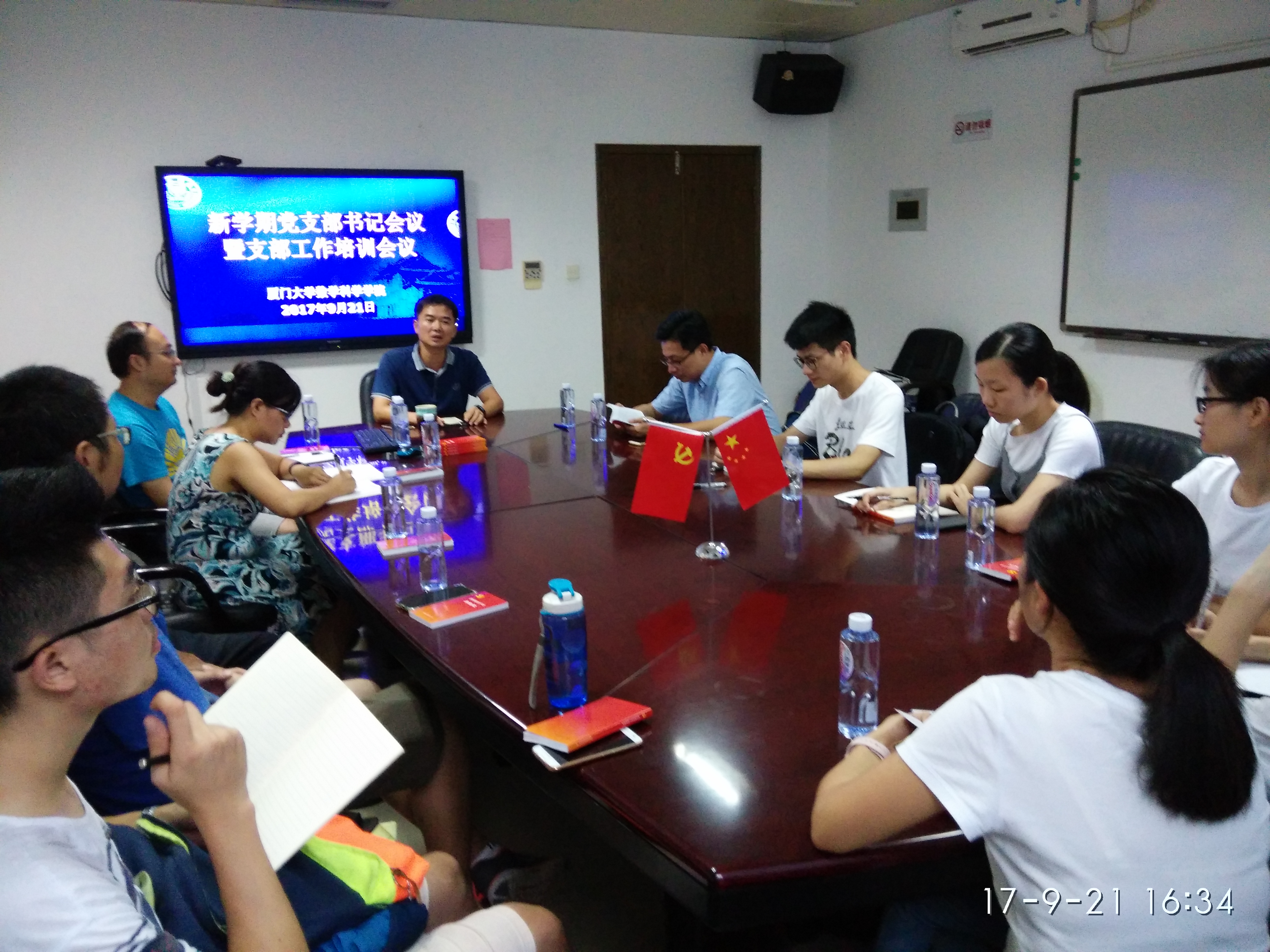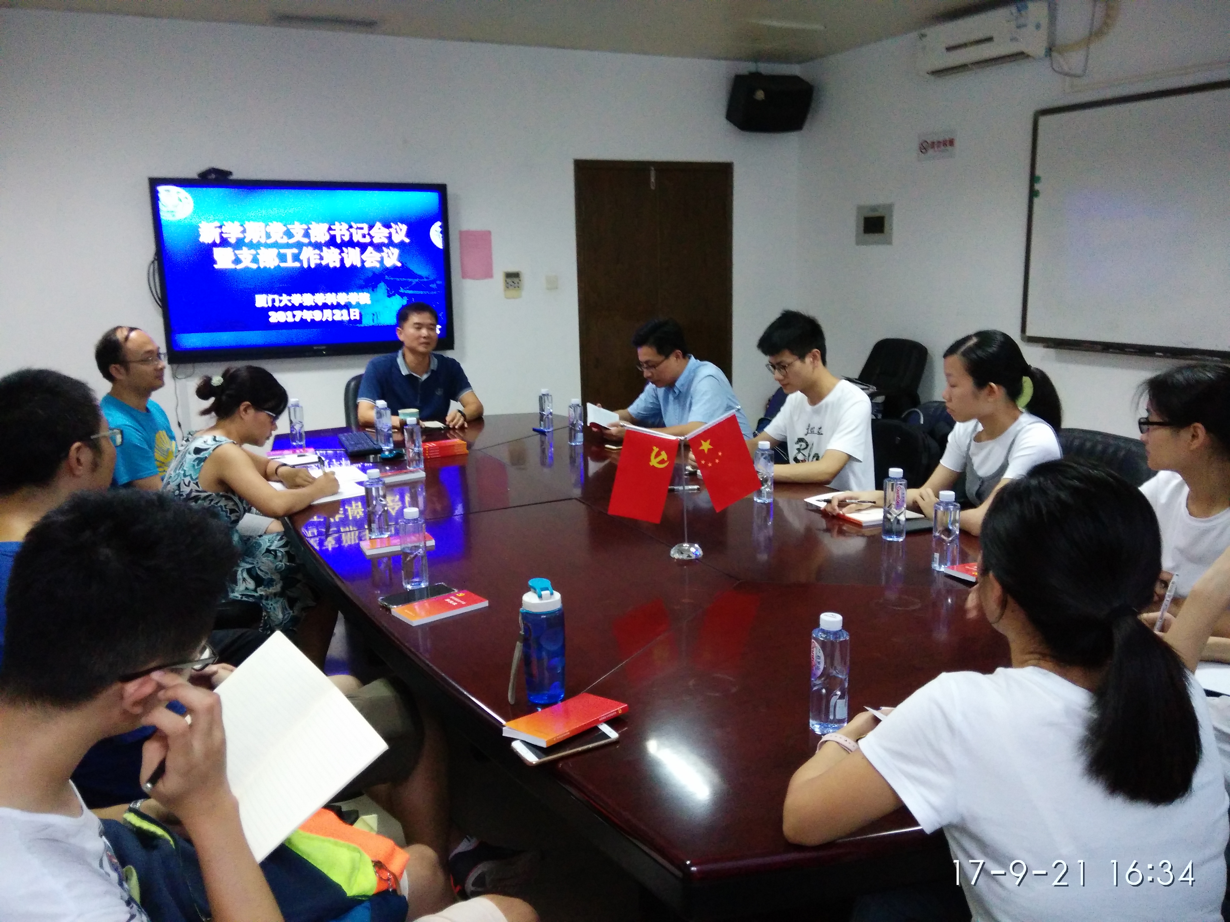 2017921日下午,新学期党支部书记会议暨支部工作培训会在313会议室召开。党委书记张明智出席并讲话,党委副书记张剑文、全体党支部书记参加会议。