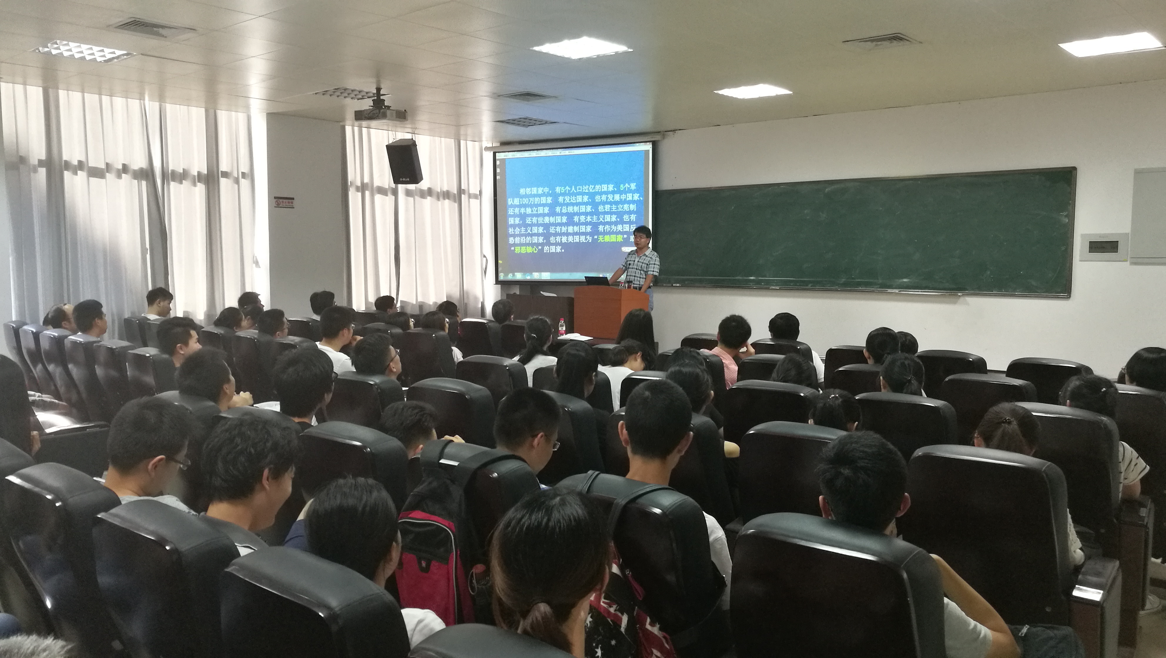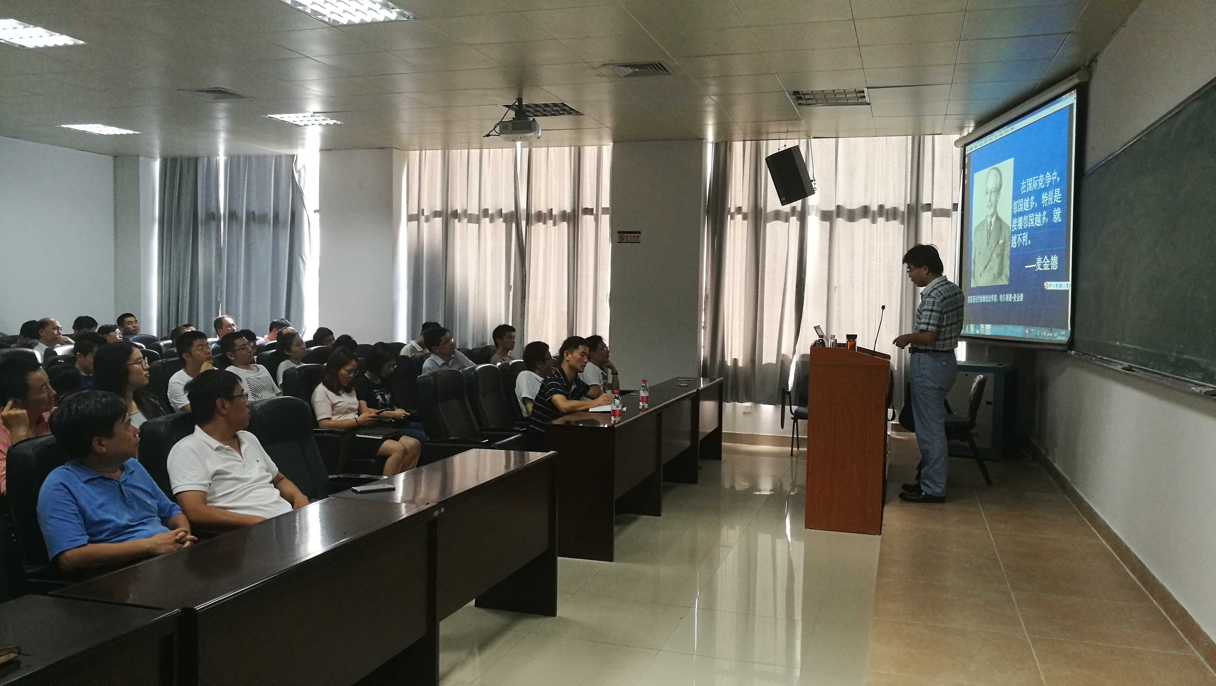 为深化党章党规、系列讲话学习,进一步坚定理想信念、强化党员意识教育,按照 “两学一做”学习教育常态化制度化工作安排以及党委党校2017年工作计划,6月23日下午,学院党委邀请马克思主义学院教授庞虎来院作理论报告。报告会在实验楼105教室举行,党委书记张明智主持会议。