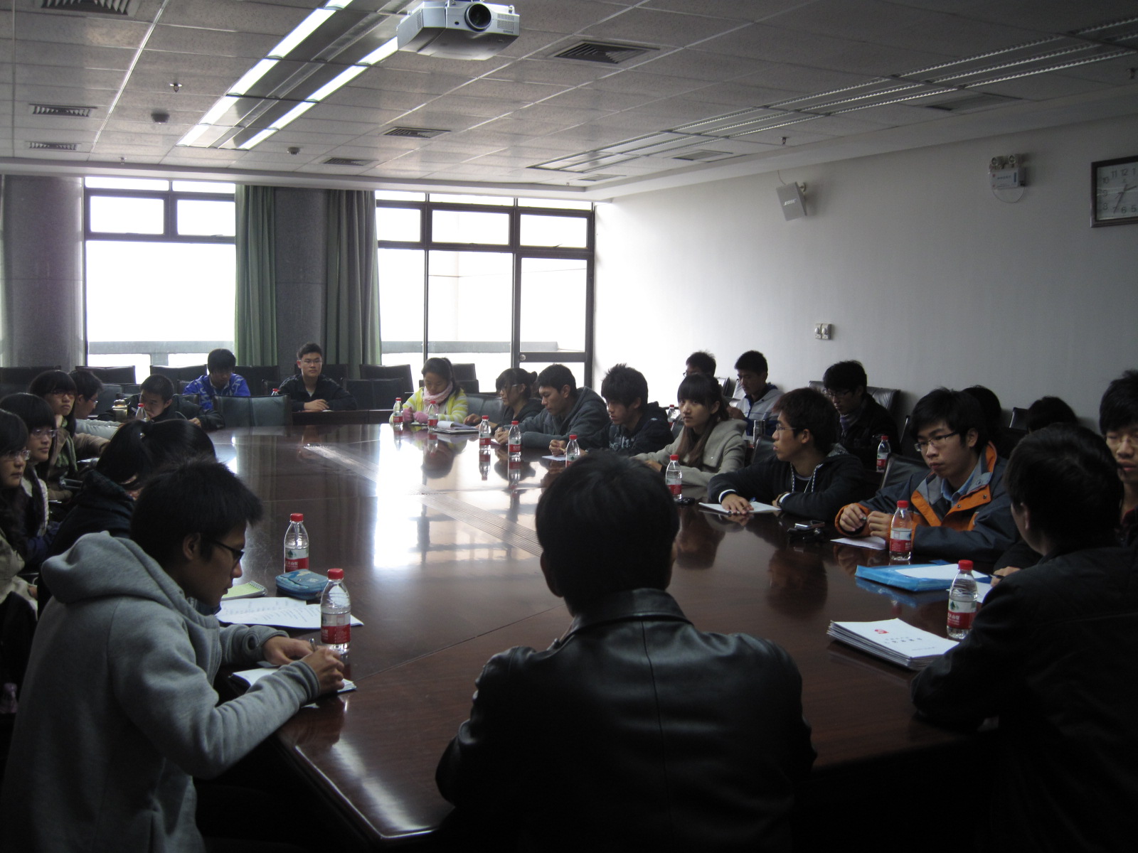 为贯彻落实学院党委“创先争优”活动承诺,推动学院学风建设,践行人才培养计划,1216日下午,学院在漳州校区主楼909会议室召开期中教学工作一二年级学生座谈会。学院党委书记张明智、基础与应用数学系主任钱建国与0910级学生党员、学生干部及普通学生代表参加座谈会。