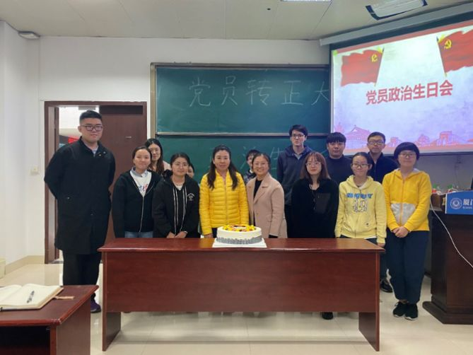 另外,本科生党支部于12月14日中午召开党员大会,讨论党员转正事宜,并庆祝柳亚泽等12名同志的政治生日,党员们分享了印有“政治生日会”字样的生日蛋糕,同时也分享着入党一年以来个人思想进步的点点滴滴。学院党委副书记丁昌利、学院团委副书记、本科生党支部书记陈淑铌、辅导员华盈鑫参加并为党员们送上祝福。