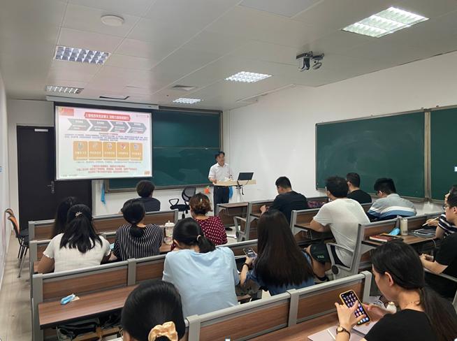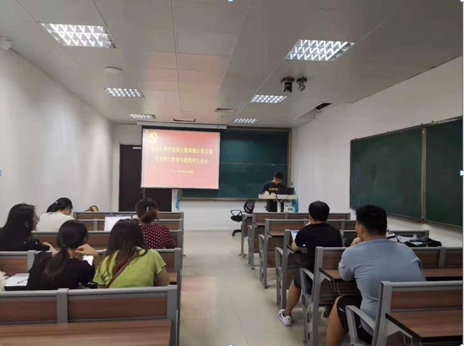 2021年6月24日下午,硕士概率统计党支部在实验楼110教室召开党史学习教育专题组织生活会,会议由支部书记顾则宇主持。联系支部的院党委黄宝秋书记参加会议,并以“领悟百年党史要义,重温支部建设历程,用党的光辉历史照亮成长之路”为题讲党课。