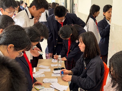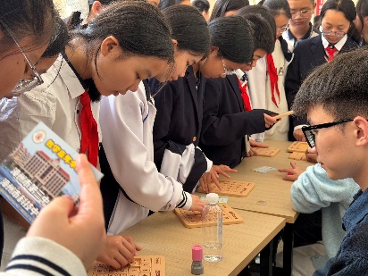 结合学院2026年数学文化节工作安排,支部党员前往漳州市第三中学龙文校区,与该校共同开展“数学文化游园会”主题实践活动。活动现场设置了汉诺塔、数字华容道、九连环、鲁班锁等8类数学趣味游戏,配套摆放数学文化科普展板,支部党员全程担任游戏指导老师,与中学生们互动交流。现场气氛热烈,同学们热情高涨,或相互切磋解法、或凝神思考推演、或主动提问请教,不少同学表示,通过此次活动切实感受到了数学的趣味与魅力,对数学学科的价值有了更深的理解。