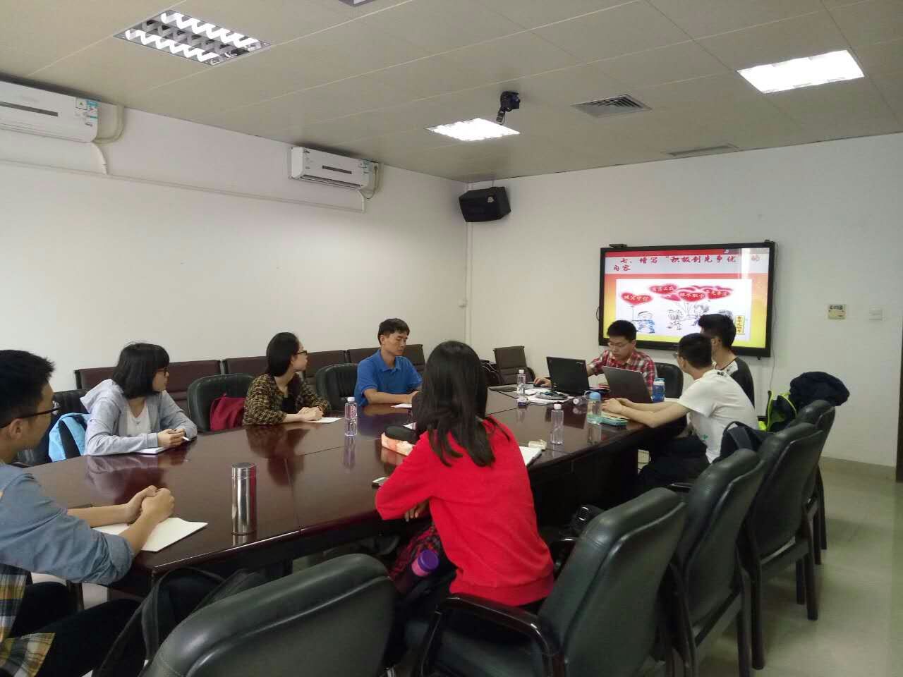 5月18日下午,数学科学学院2014、15级本科生党支部在海韵B313召开“两学一做”学习教育第一专题会议。会议由支部书记廖康恩贝主持,黄俊斌同学、刘俣伽同学做专题发言。院党委张明智书记作为联系本支部的院领导全程参加会议。廖康恩贝同志首先对 “两学一做”支部下一阶段具体工作做布置,然后就本专题研讨传达了上级组织的有关要求。