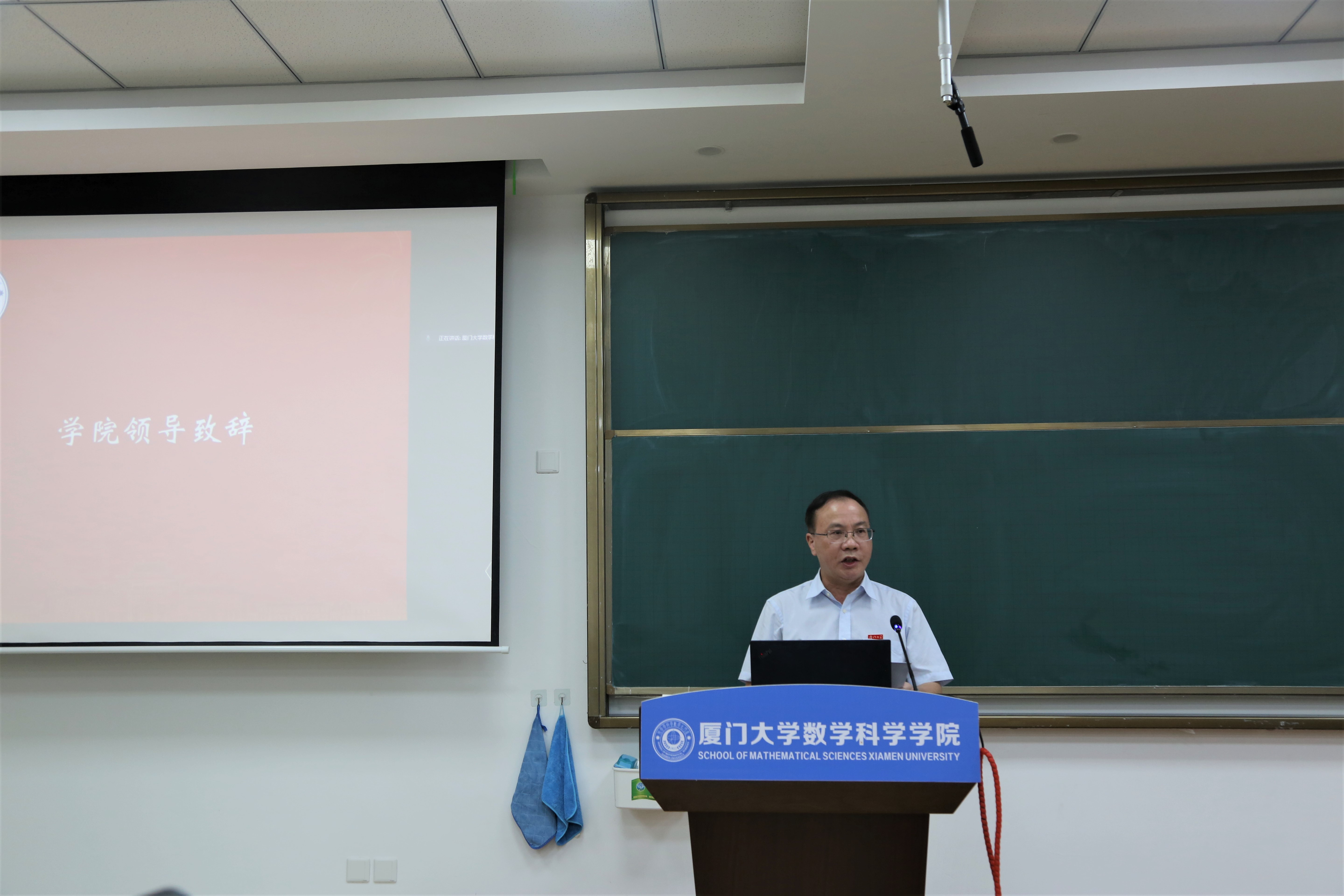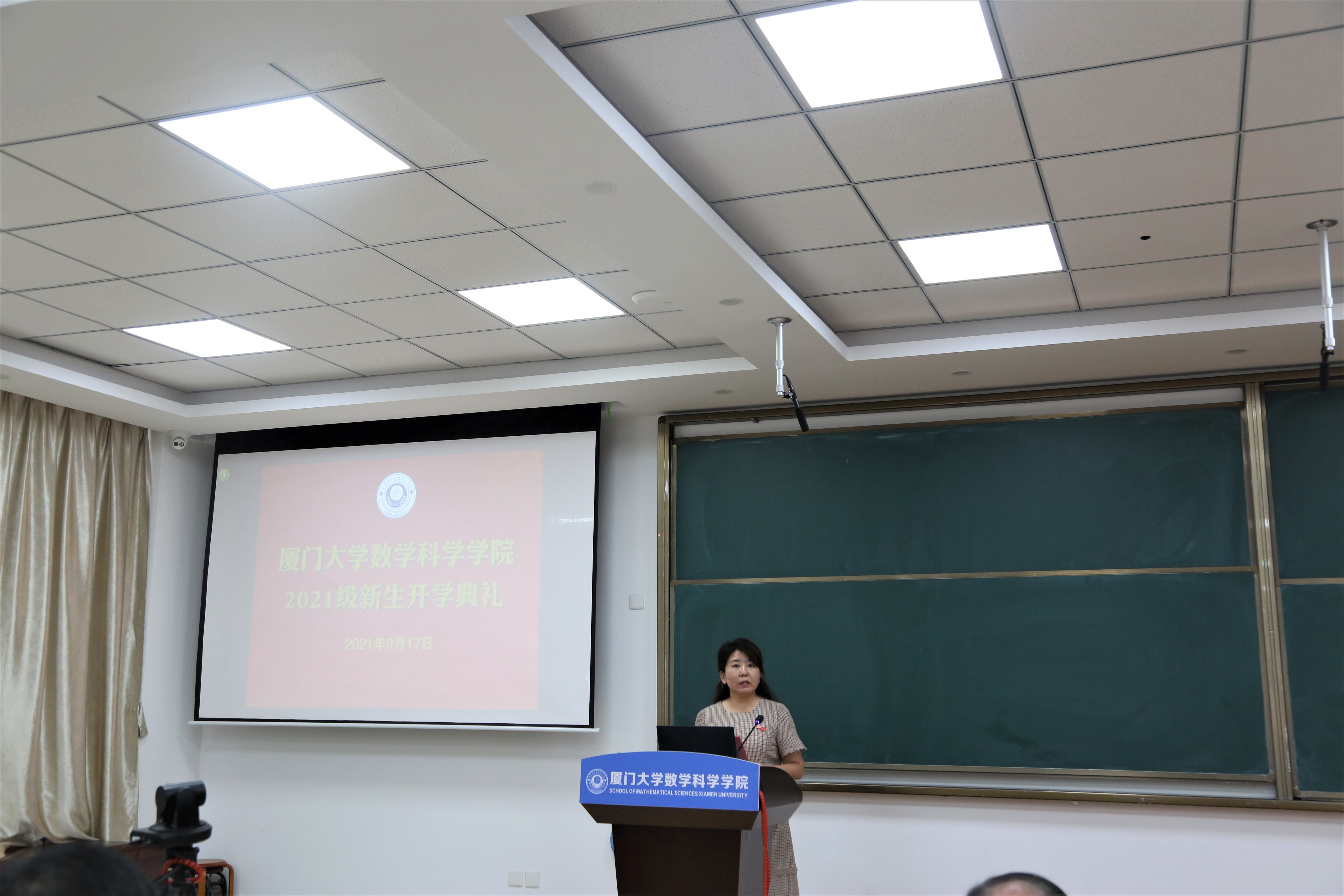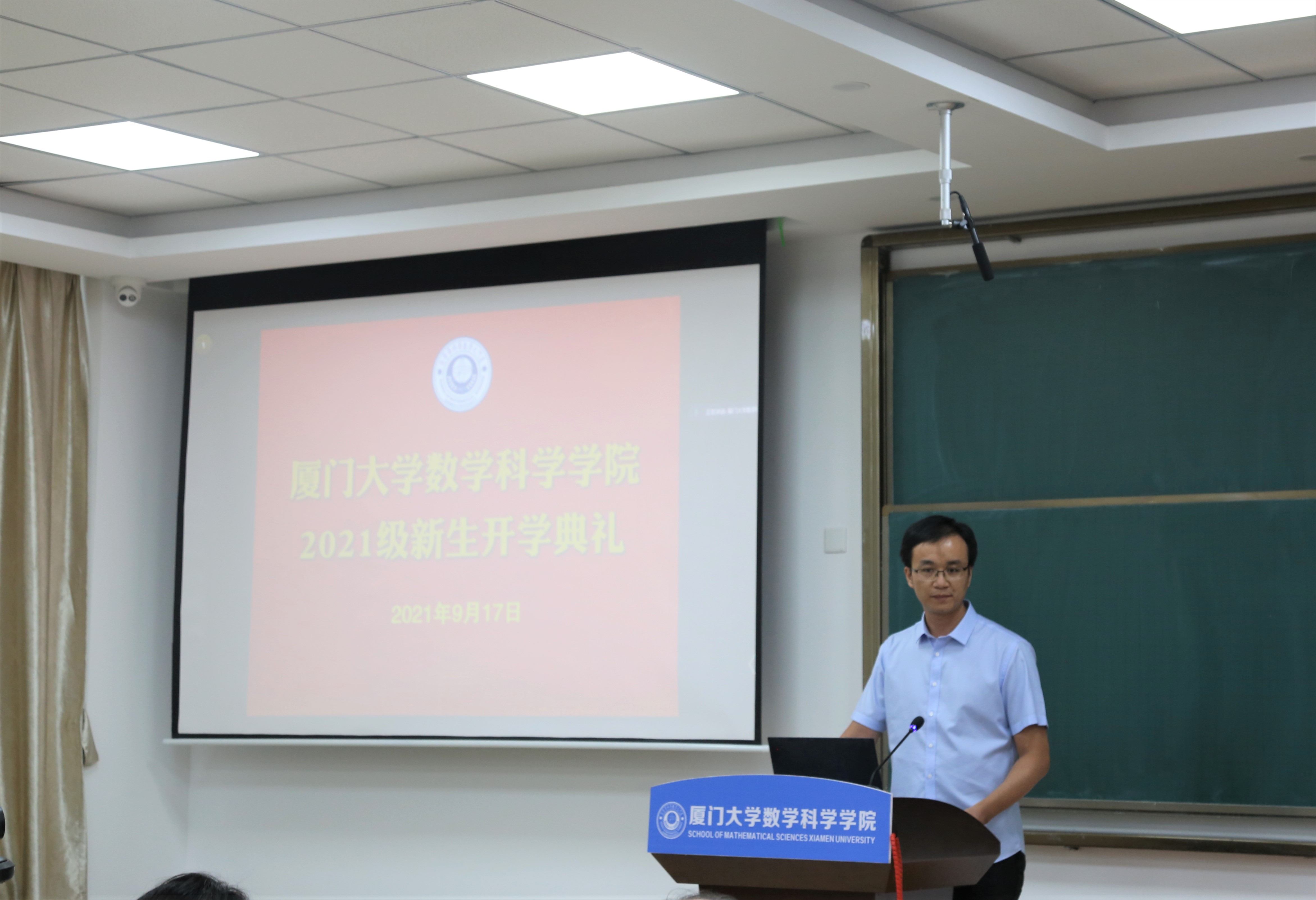 9月17日下午,厦门大学数学科学学院2021级新生开学典礼在海韵园实验楼106报告厅举行。受疫情影响,典礼采用线上方式。数学科学学院院长谭绍滨,学院党委副书记丁昌利,副院长金贤安、朱玉峻,工会主席伍火熊,学院各系主任,2021级本科生班主任,学院学生工作组全体成员出席,典礼由丁昌利主持。