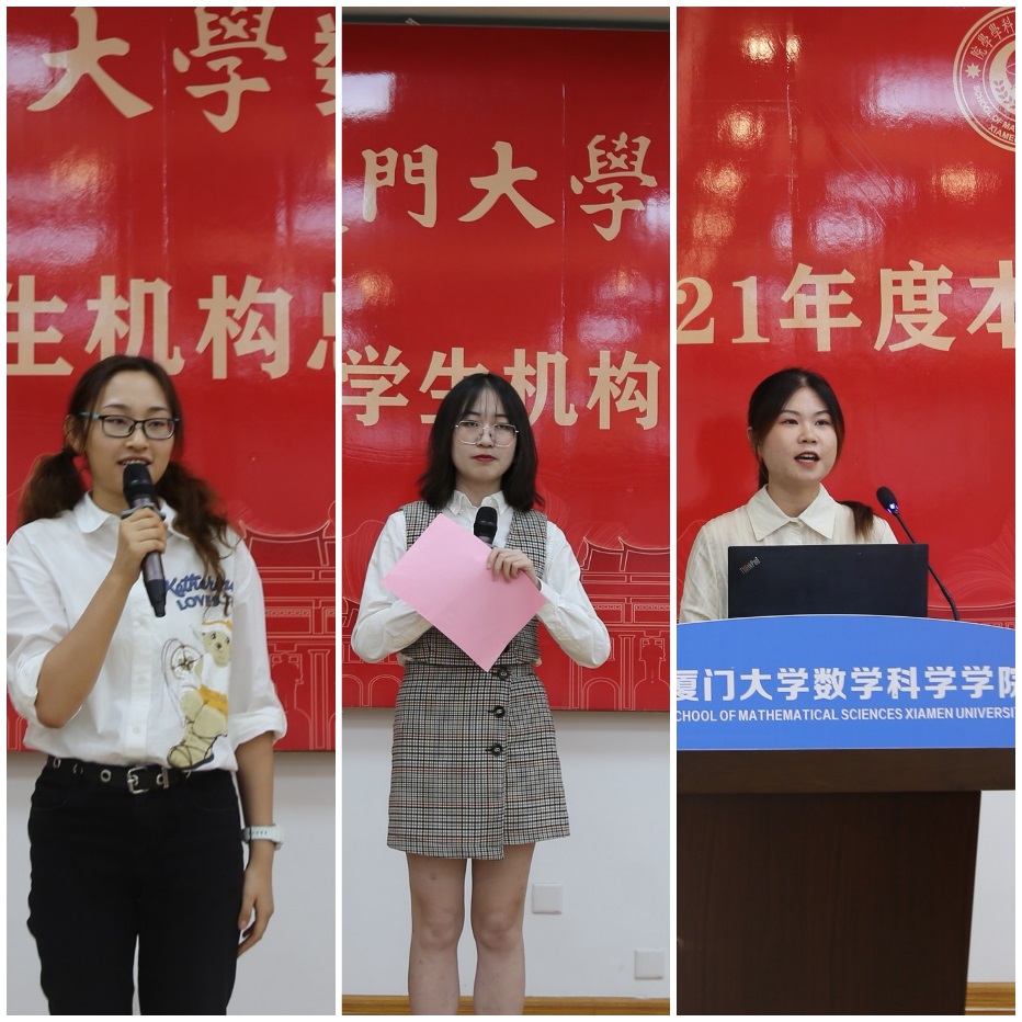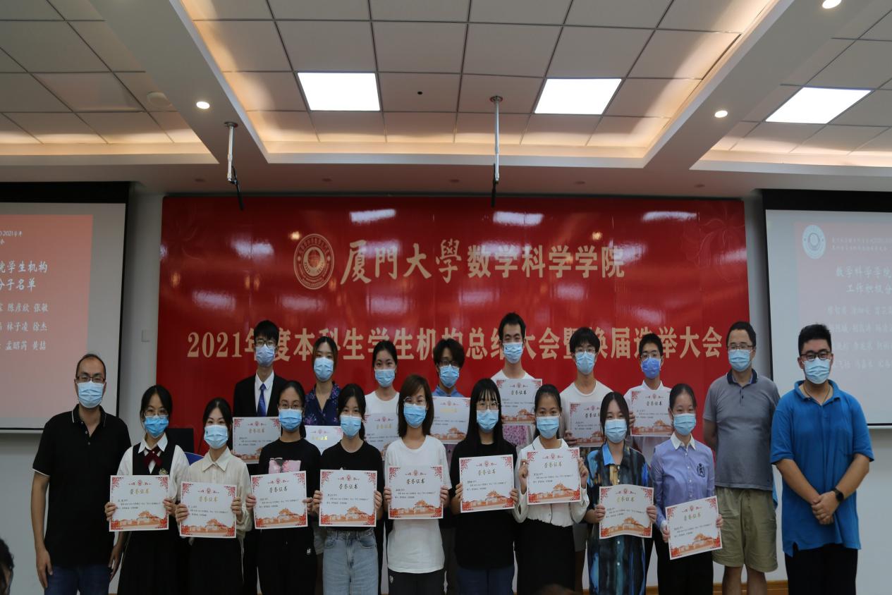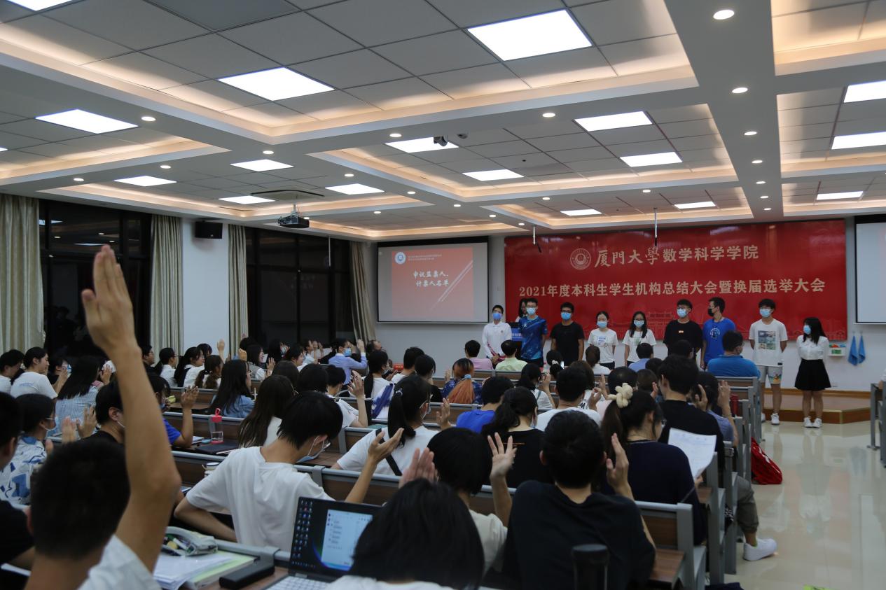 10月15日晚,数学科学学院2021年度本科生学生机构总结表彰大会暨换届选举大会在海韵实验楼106召开。出席此次会议的有数学科学学院党委副书记丁昌利,学院团委副书记陈淑铌,辅导员华盈鑫、陈依杭,本科生班主任陈竑焘、陈福林、连政星、聂嘉明、黄灿,数学科学学院兼职辅导员蒋金阳、程琦秦,学生机构代表团以及各个年级学生代表团。