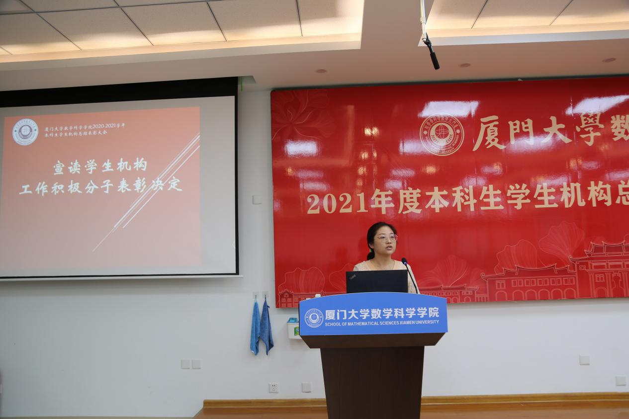 团委副书记陈淑铌老师宣读2021年度学生机构工作积极分子表彰决定,并颁发奖状。