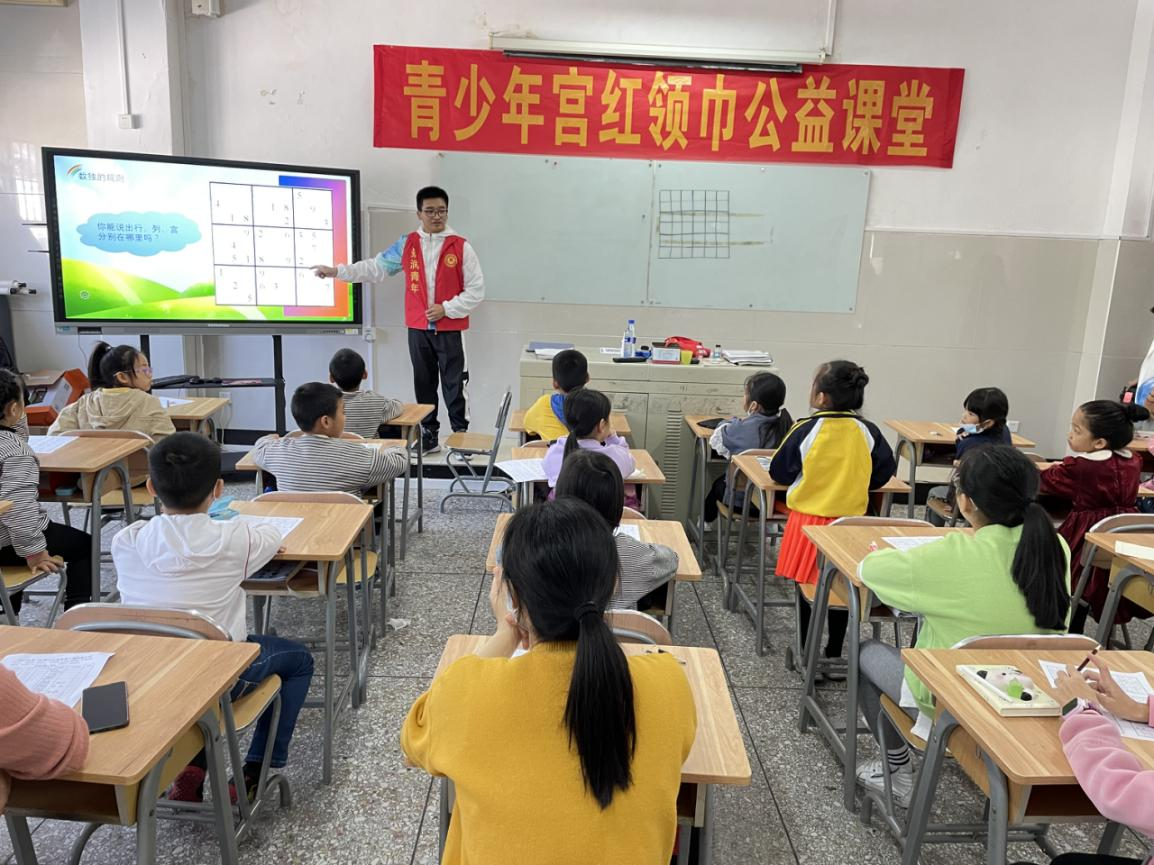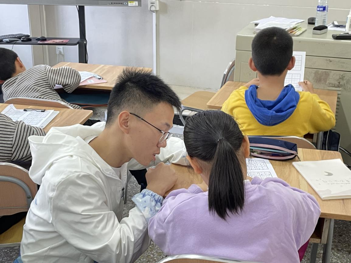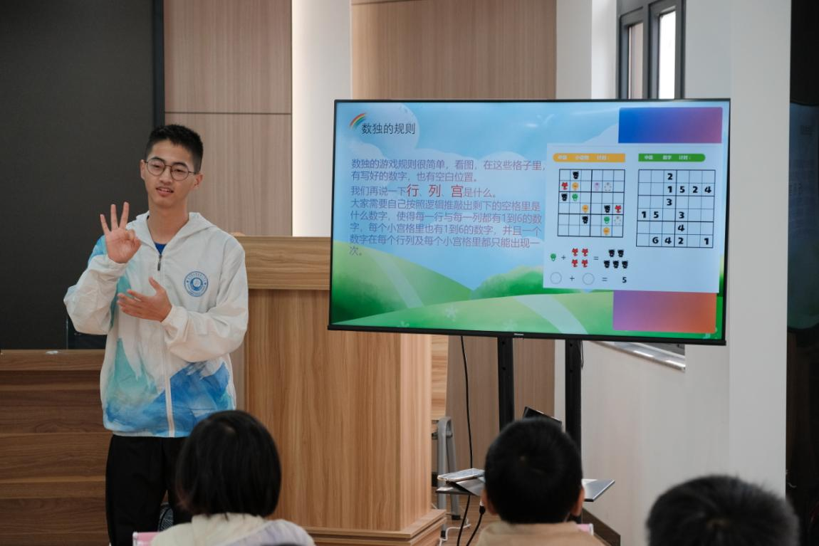 在龙岩青少年宫和紫金山社区的课堂上,来自厦门大学数学科学学院的实践队员们既是认真负责的老师,又是亲切和蔼的大哥哥大姐姐。从数独的历史和发展讲起,到数独的规则、基本方法、解题技巧与练习……孩子们清澈的眼睛里盈满好奇和对知识的渴望,时而蹙眉思考、时而又因融会贯通而欣喜。数字与格子交错组合、学习与思考相得益彰,一扇思维启蒙的门就这样被悄悄打开。