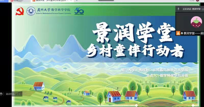 景润学堂,致力于打造公益与创业相结合的项目,针对福建、云南、宁夏等地农村教育资源匮乏,学生求学意志薄弱等问题,通过线上、线下齐头并进的教育帮扶模式,助力教育帮扶。线下,支教队每年选派优秀志愿者前往云南晋宁双河民族中学、宁夏隆德张树村落地支教,通过扶贫、扶智、扶志相结合,从根本上着手,形成乡村振兴的内生动力和长效机制。实地支教结束后,利用“互联网+”成立数学在线答疑平台,打破地域限制,随时随地对学生进行辅导,进行精准教育帮扶,将爱心帮扶活动无限延续。