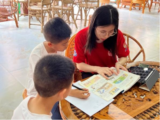 途中,实践队有幸遇到藤编文化传承人向我们讲述传统文化传承和藤编编制的过程,队员们收获颇多。在参观交流后,我们了解到当地有几位正在上小学的孩子,有“数”青年实践队员拿出自己的“看家本领”,决定将“景润学堂”开到更多的乡村田野,发挥所学所长,传递知识力量,为其孩子讲解数学问题、梳理数学知识,传递“数学好玩、数学有趣、数学有用”的理念,并向他们介绍厦门大学美丽的校园风光和浓郁的学风,在孩子心中植入一颗爱心种子。