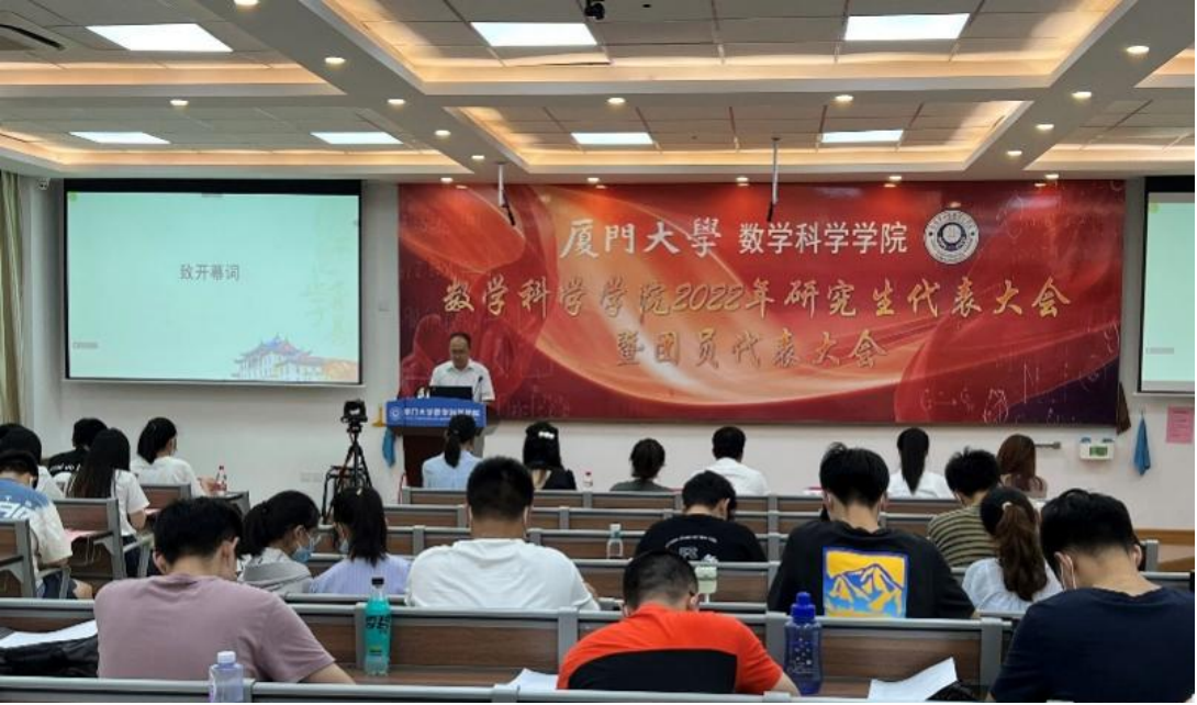 9月18日,数学科学学院2022年研究生代表大会暨团员代表大会在海韵园实验楼106教室召开。此次的研究生代表大会采用线上与线下同步进行的模式,未到场的代表们通过腾讯会议参与本次会议。