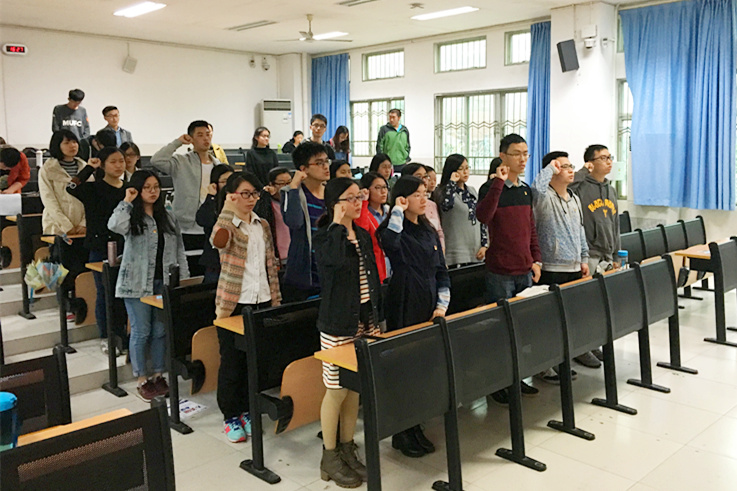 4月15日下午,2013级本科生党支部在公寓教学楼104举行党员宣誓仪式。辅导员陈淑铌、兼职辅导员林丽玲以及2013级党支部全体成员参加了本次会议。
