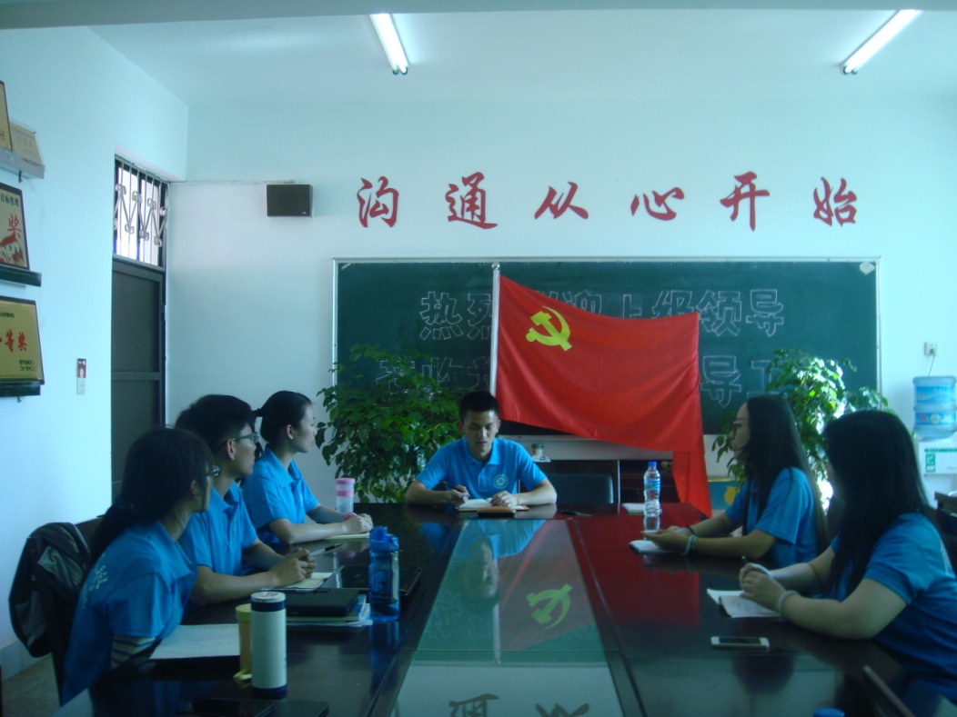 下午5点,晋宁双河暑期实践队临时党支部举行了民主生活会。每一位党员就自己来到双河之后的表现进行批评和自我批评,同时即将转正的王文敏同志以及姚慧同志就进入双河民族中学以来的生活感受发言。会议之后,支部书记李超总结,希望各位党员能够做好以下几点:端正思想态度;要民主团结;要严格自律,遵守学校规章制度;坚持批评和自我批评,认真工作。