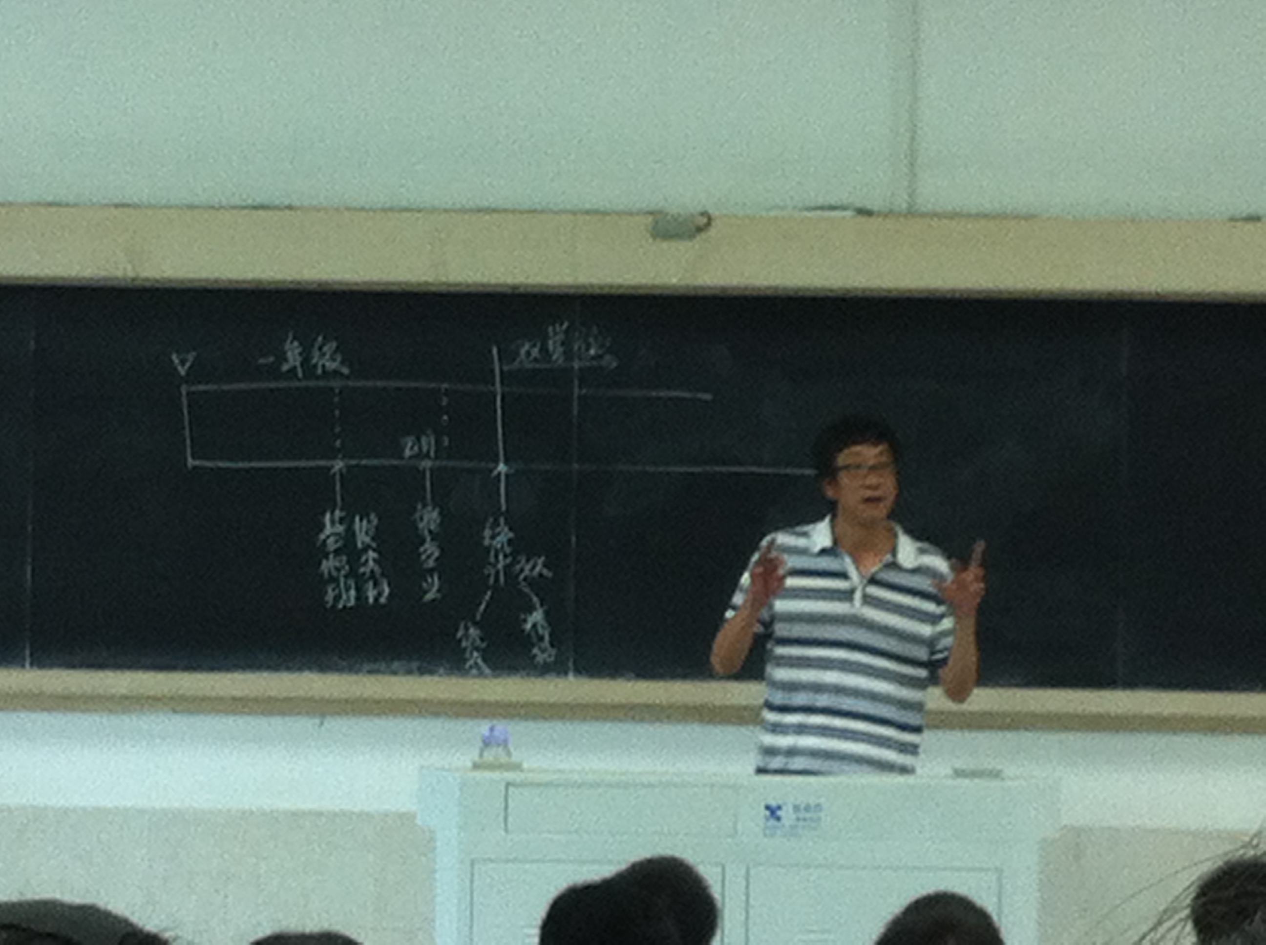 接下来,钱建国老师以画图的形式向各位新生生动形象地介绍了大学本科四年的大事。钱教授将大学四年的事画在时间轴上,并且还对四年中主要事项及学生发展方向进行详细的介绍。同学们对专业分流,基地班和拔尖班,保研出国等相关信息也有了进一步的了解。钱教授还强调了大学学习与中学学习的区别和特点,鼓励大家调整好心态,迎难而上,用认真的态度来对待专业课的学习,为日后的课程学习打下坚实的基础。