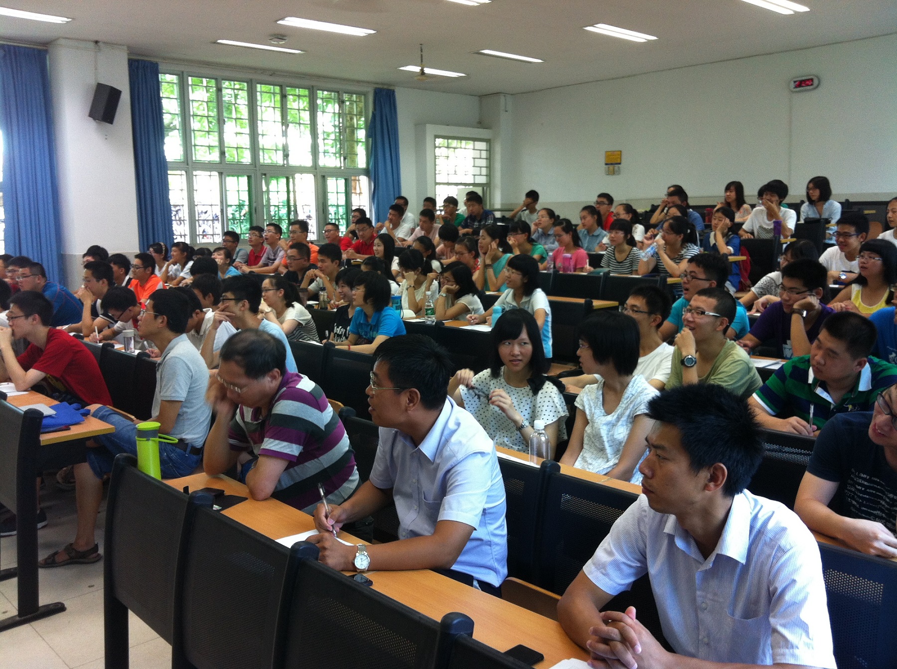 8月25日上午九点,2014级本科新生入门指导大会在学生公寓教学楼105召开。参加此次学科入门指导的老师有副院长钱建国教授、数学与应用数学系主任金贤安教授、数学与应用数学系副主任刘轼波教授、概率与数理统计系副主任黄荣坦教授、教学秘书黄晨龙老师。大会由辅导员石义凯老师主持。