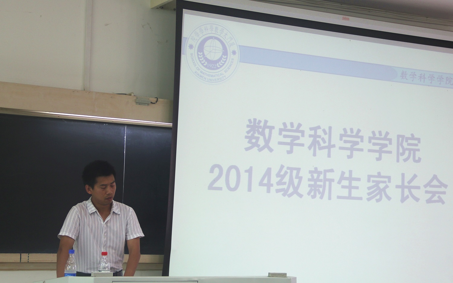 书记张明智一开场便提醒大家注意防暑,致欢迎辞并对学院学科平台、师资队伍、专业、科学研究和学术交流、人才培养、毕业去向等方面做了详细介绍。“感谢家长,学生选择我们厦门大学数学科学学院!相信数学已引起大家的重视,报数学意味着孩子不是混,而是决定也是必须要用心负责地读完大学,意味着要比以往更努力。”他强调独立生活、自主学习、人际交往等方面都是大学的必修课。