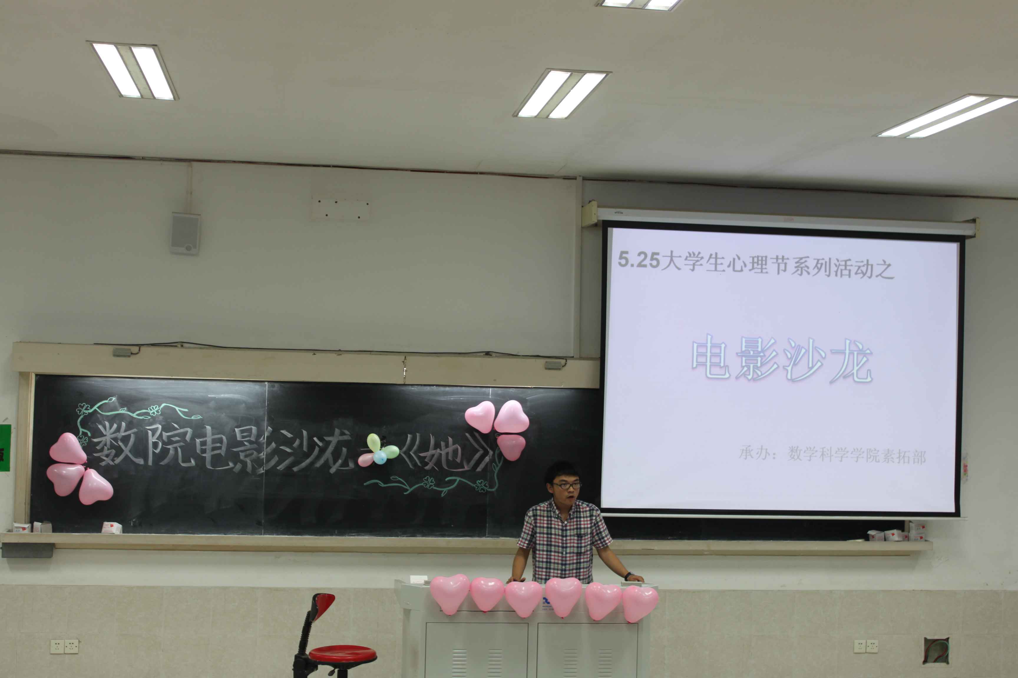 为迎接“5.25” 全国大学生心理健康日,5月16日晚7点我院在公寓教学楼204举办了一场心理电影赏析,邀各级同学一起观看心理电影《她》,正式拉开了我院心理健康节的序幕。