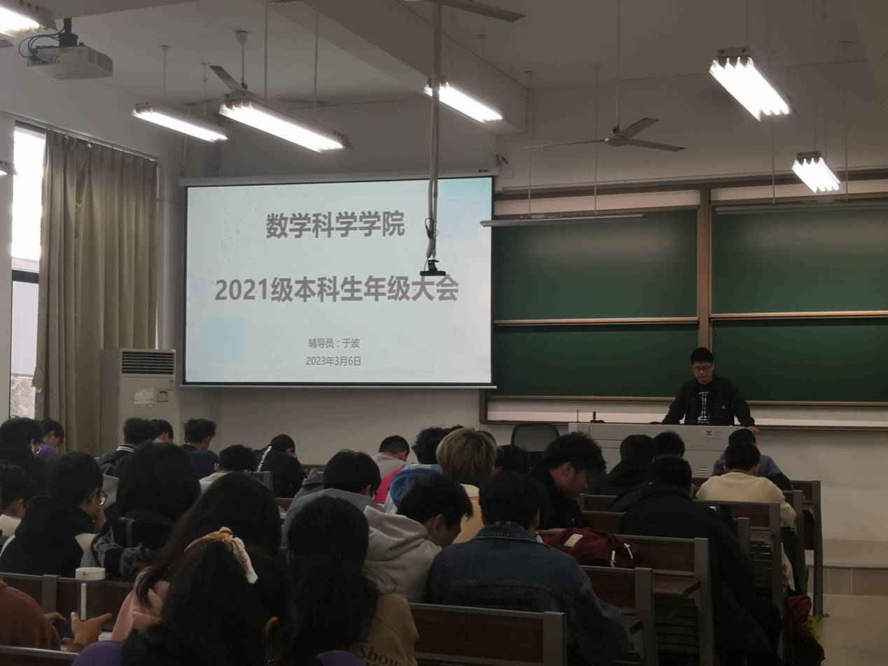 为确保新学期学生工作的有序开展,使学生明确新学期学习和生活的各项任务,3月2日至8日,数学科学学院以“开学第一课”的形式召开各年级本科生大会,大会由本科生辅导员陈淑铌、于波,兼职辅导员高玉婷、于亚楠、吴海岚、杨家西分别主讲。