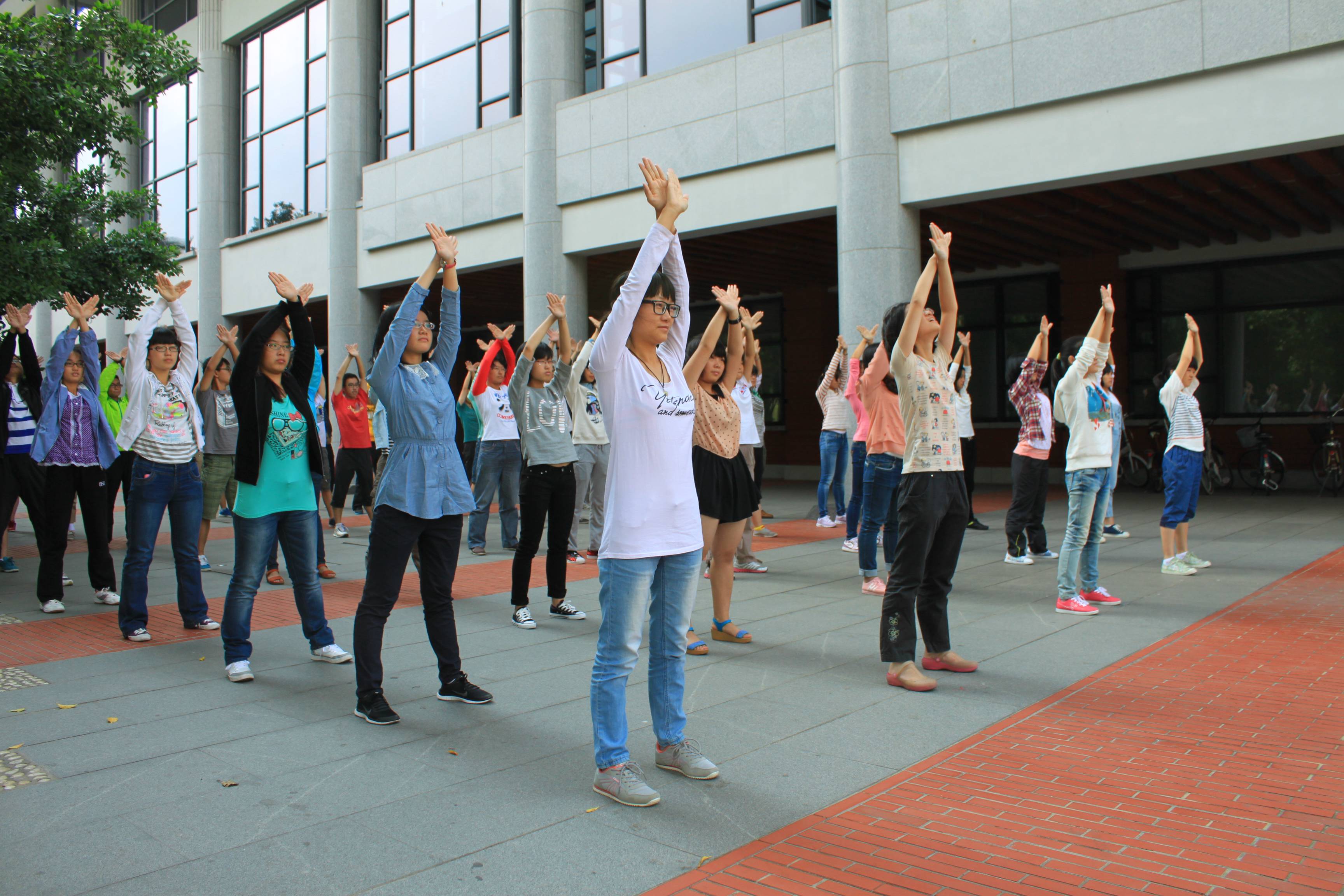 2013年10月16日上午十点至十一点半,我院13级同学集合在恩明楼前,进行广播操训练。学院特地请来了体育教学部的赵秋爽老师为我院的广播操队进行指导。该训练由我院11级郭歌、13级梁心怡同学领操,辅导员陈向柳、辅导员石义凯前来慰问。