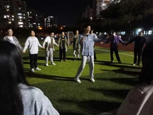 为帮助学生放松身心,释放压力,增强心理素质,提高抗压能力,积极地面对困难与挑战,近期,数学科学学院积极组织本研学生在海韵学生公寓操场开展心理素质拓展活动。