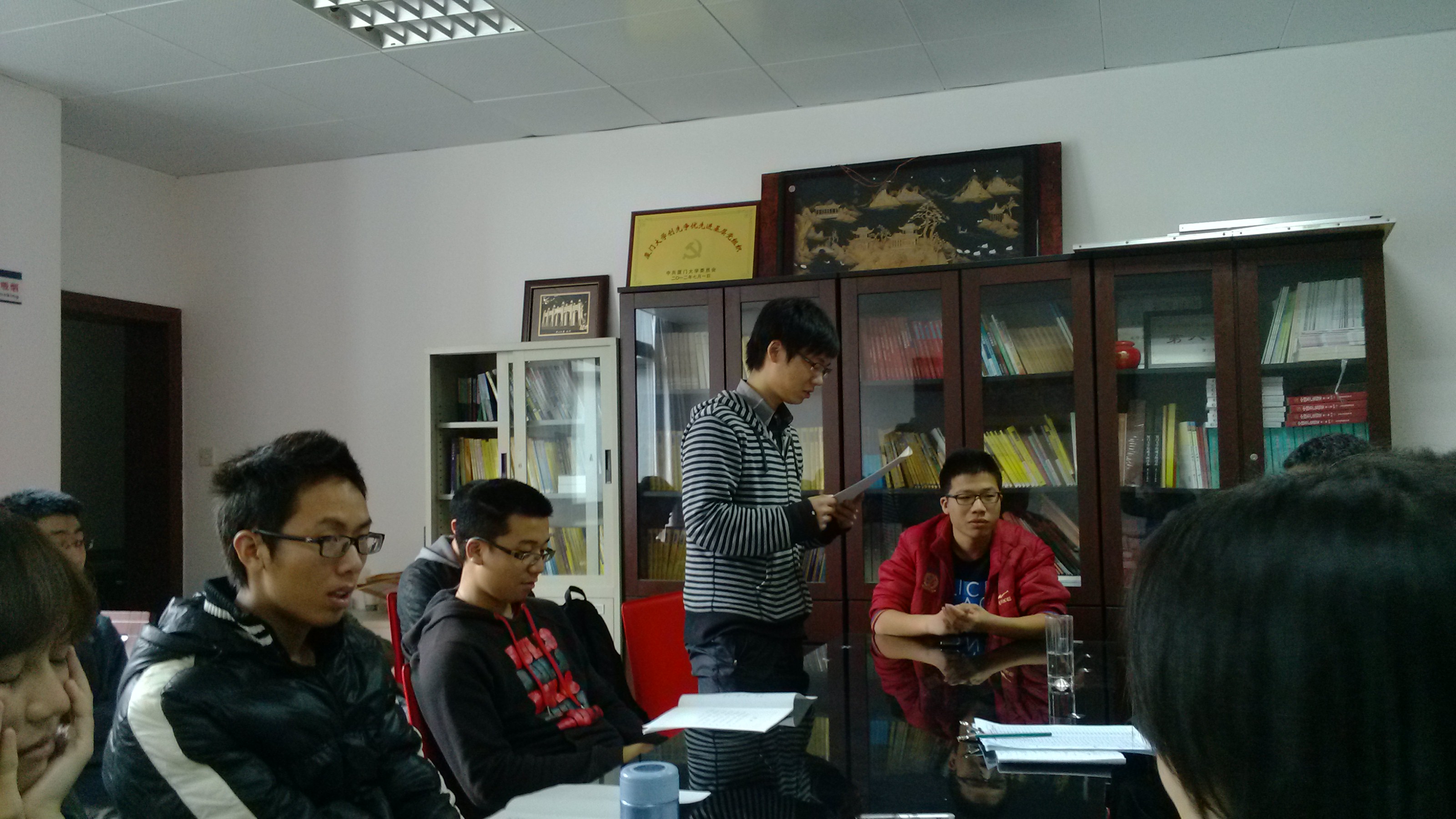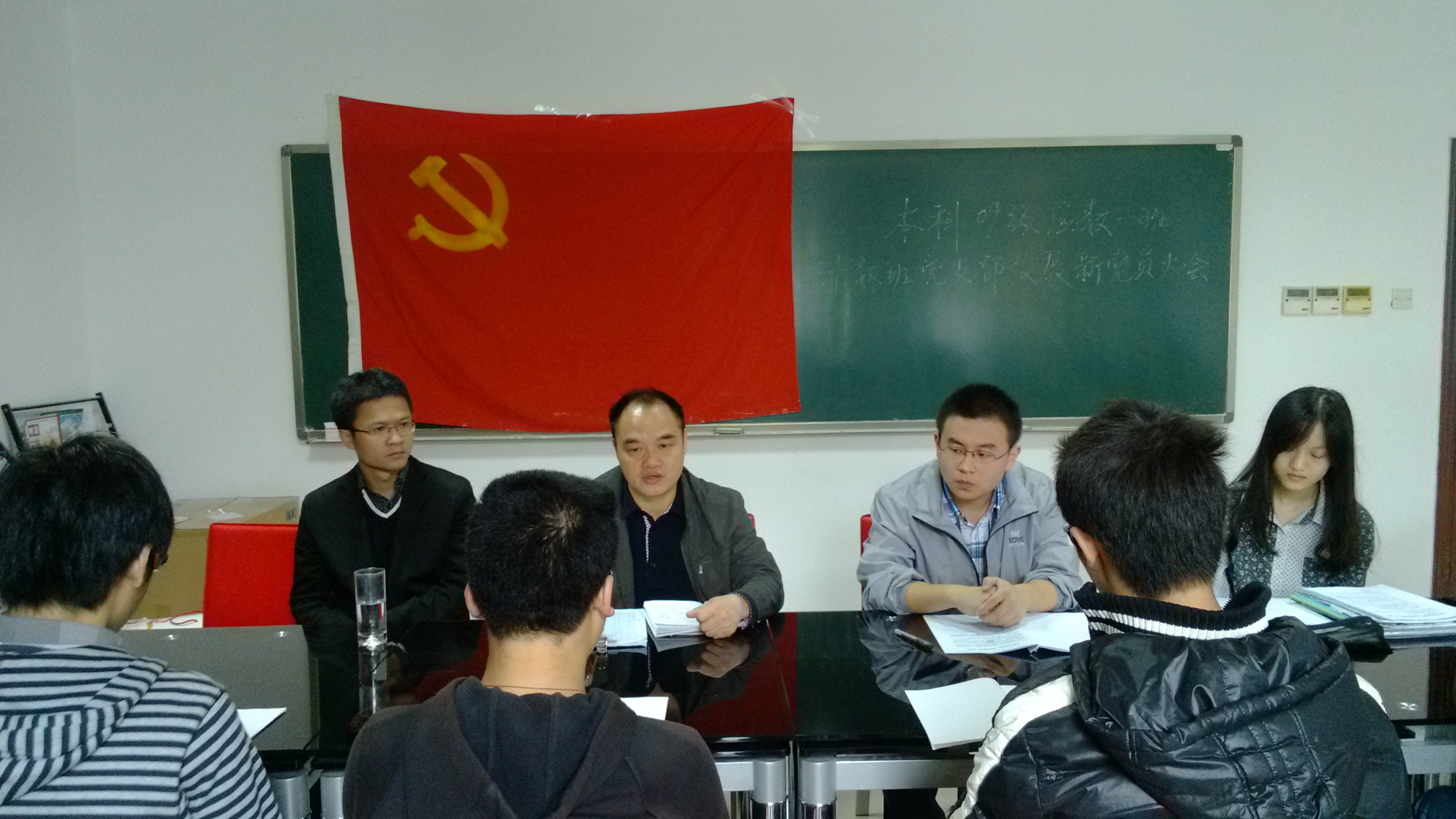 12月5日早10点,数学科学学院09级应数一班、计数班党支部在海韵办公楼一楼会议室召开了党员大会,会议由09级应数一班、计数班党支部组织委员崔逸凡主持,党委副书记郑诚明,辅导员陈向柳老师以及09级应数一班、计数班党支部的七位正式党员,全体预备党员和4名发展对象出席了本次会议。