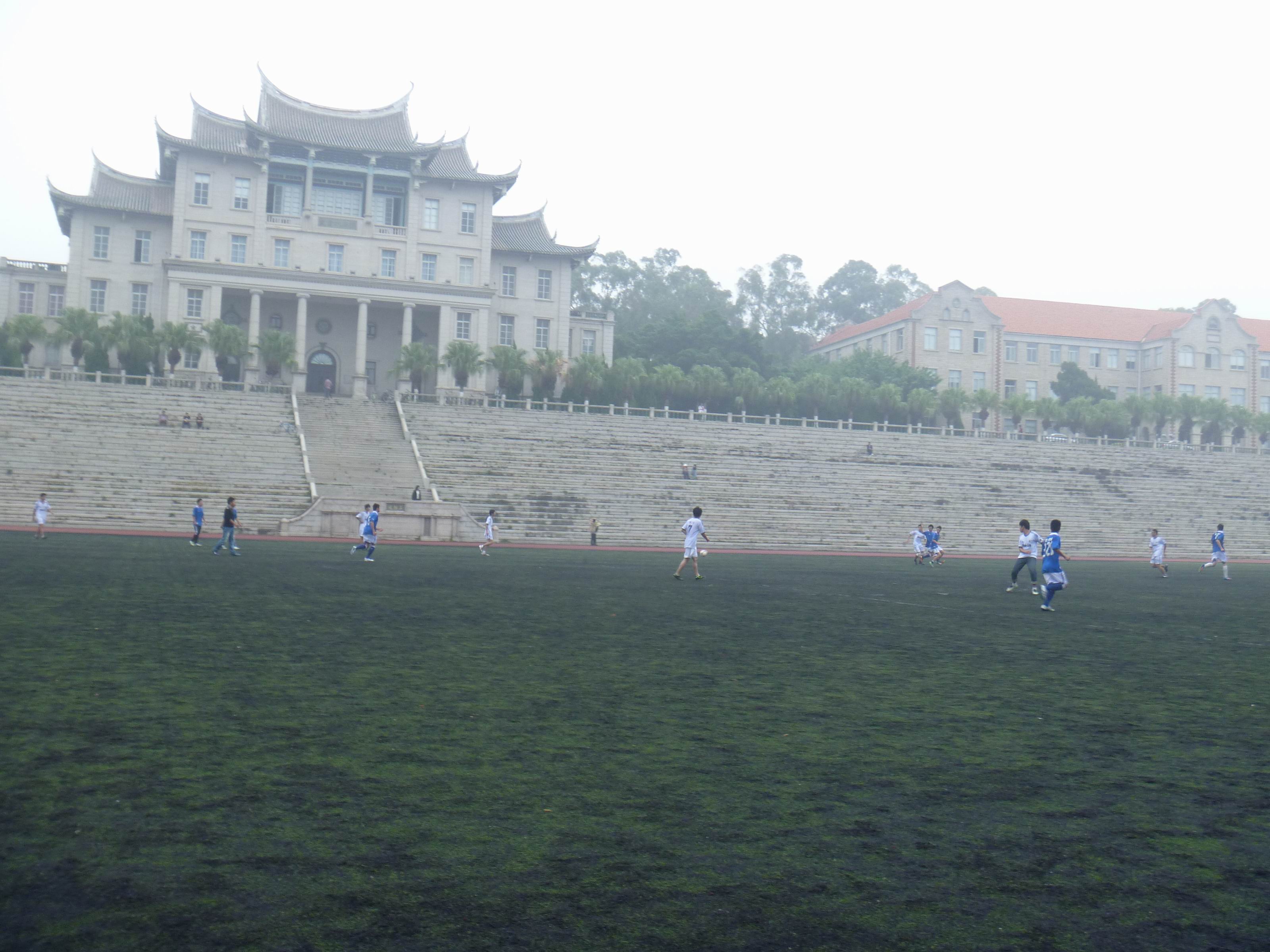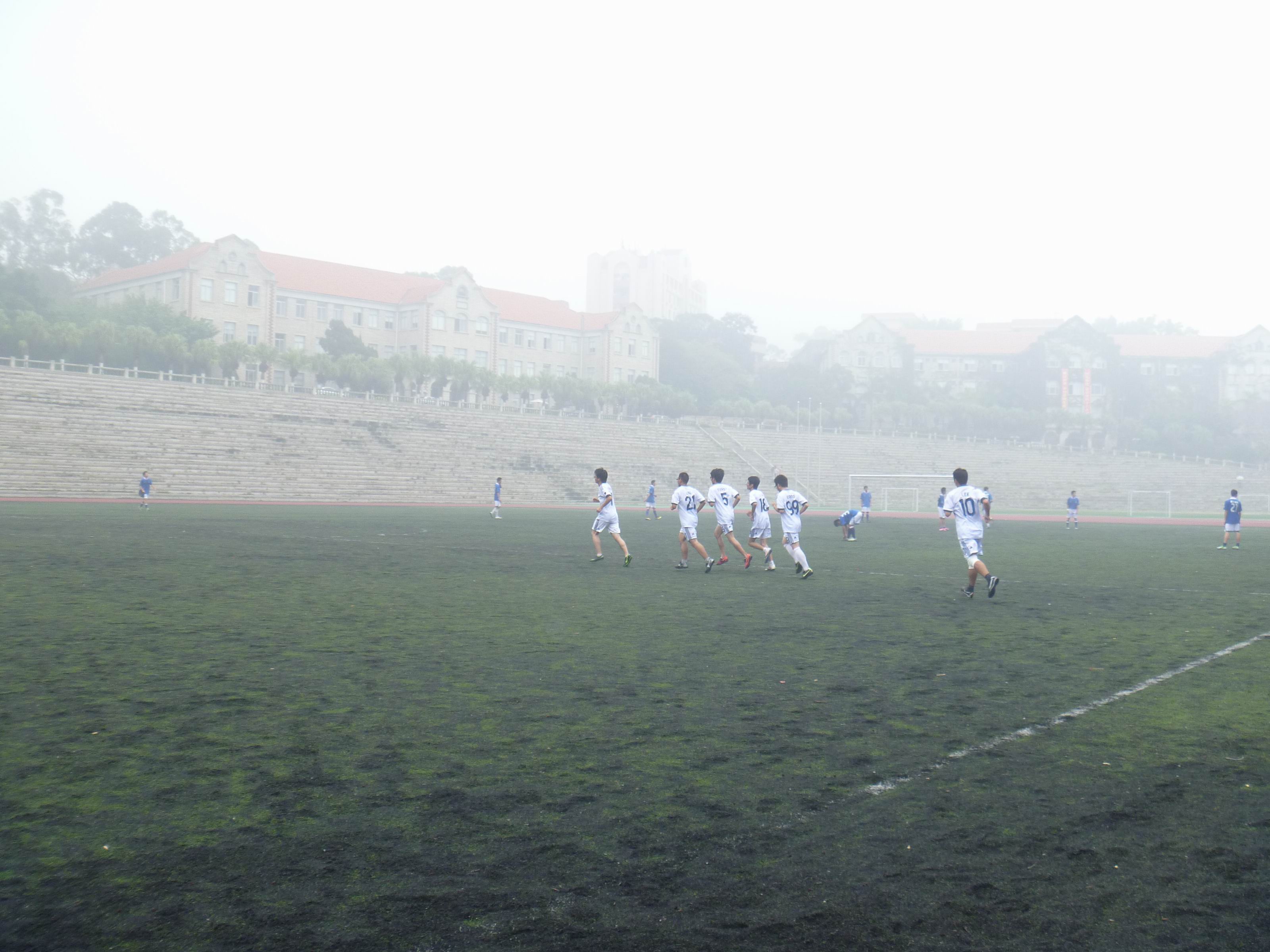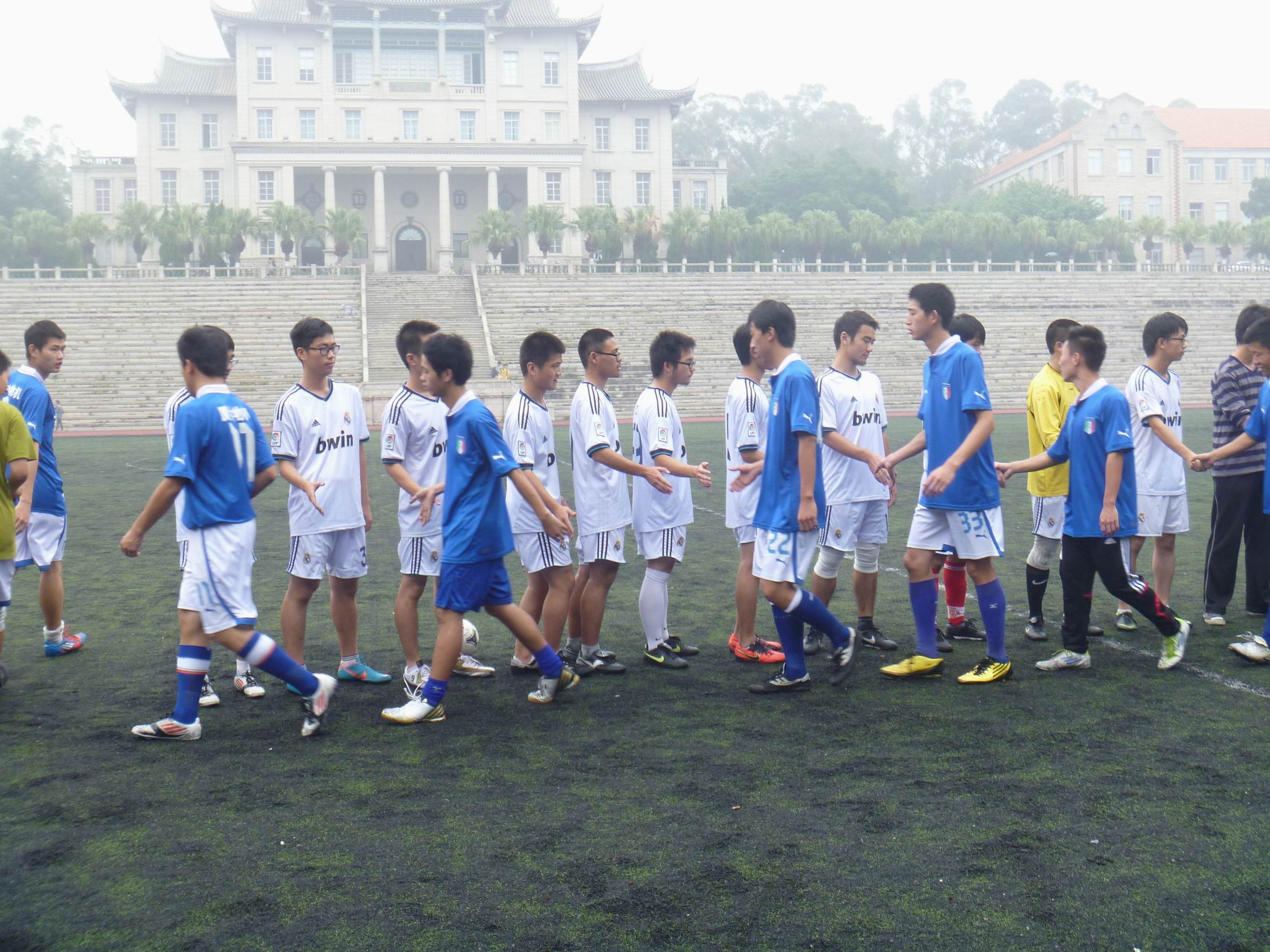 11月22日12点37分,上弦场上,我院新生杯最后一场对阵物理机电学院的比赛拉开了帷幕。天气阴沉,细如牛毛的雨一直在下,但这样的天气丝毫没有影响队员们比赛的热情。