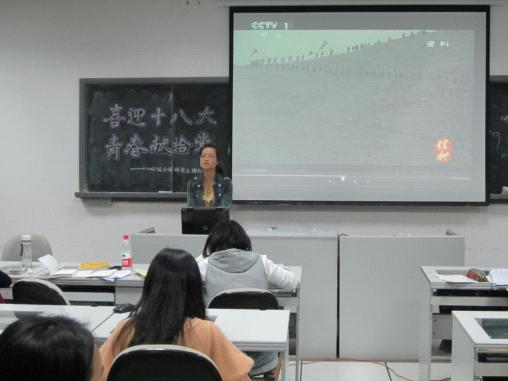本次扩大会议由团支书罗桂霞同学主持,她首先指出本次团日活动的主旨是引导广大党团员积极学习十八大精神,坚定信念、牢记宗旨,以老一辈的共产党人为榜样,将青春奉献给党,为建设“美丽中国”而努力。随后大家观看了时长150分钟系列纪录片《信仰》。