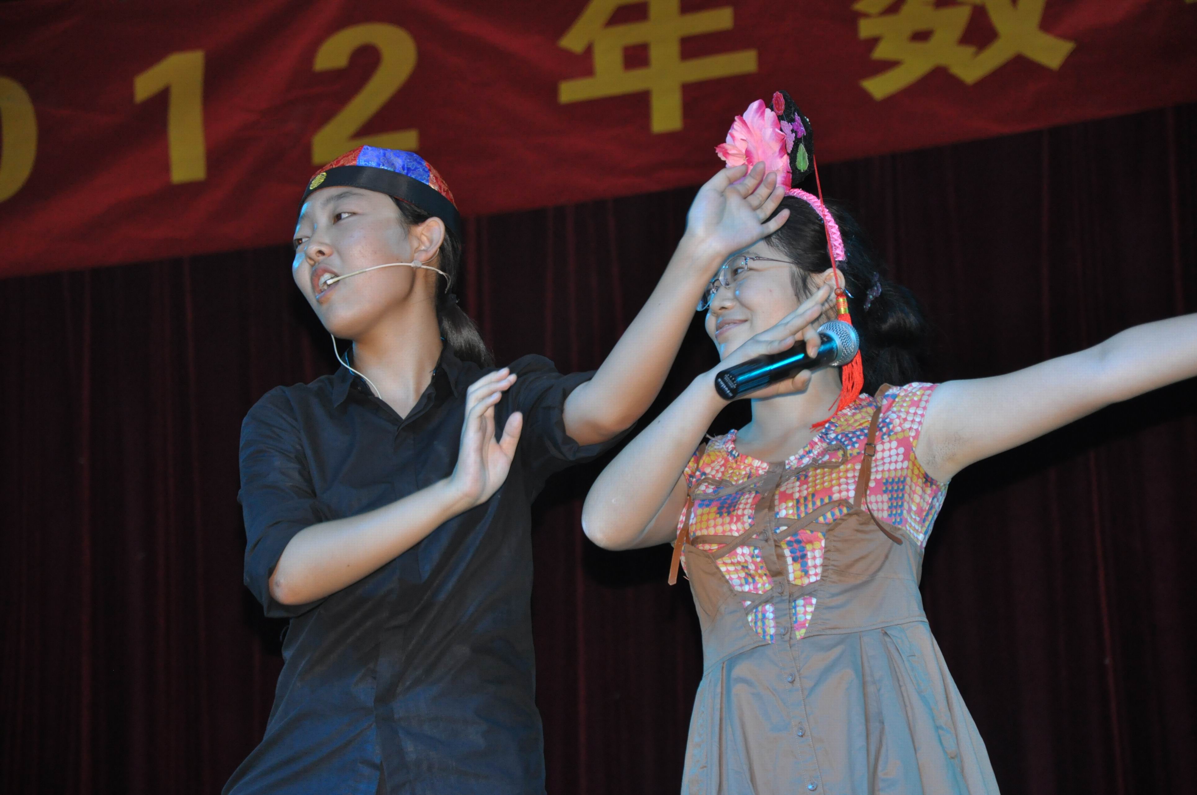 同学们才华横溢,精彩节目轮番上阵。悠扬的二胡独奏,令人陶醉的单簧管合奏,别有一番风味的民族舞,郑诚明副书记倾情献唱的《天路》,还有12级新生带来的绚丽T台秀。精彩一波接着一波,台下观众应接不暇,不时爆发出激烈的掌声与喝彩。随后,还有摇滚到底的乐队演唱,炫目的机械舞,十佳歌手的倾情演唱,尤其是刘明媚、王文敏等11级同学带来的话剧《还珠格格之非诚勿扰》以其滑稽的造型,夸张的表演,逗得全场观众捧腹大笑。