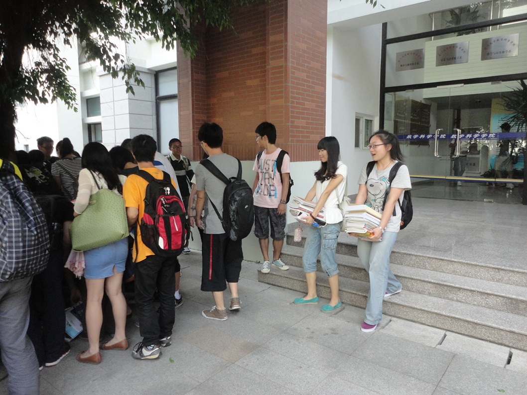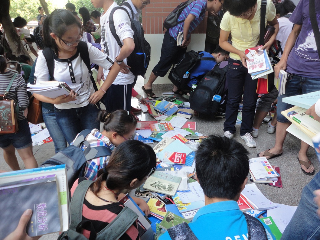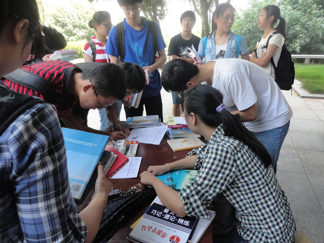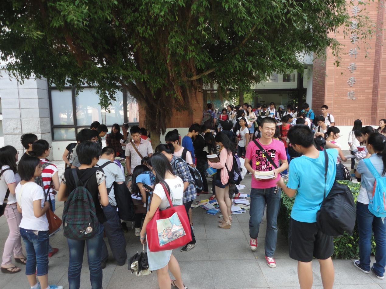 12日中午课后,10、11、12级同学便迫不及待地前去行政楼前挑选书籍。每人限领4本,选好后找专人登记。学长学姐们捐赠的旧书囊括了专业课本、辅导教材、英语教辅、文学读物等方方面面,对同学们来说十分实用。活动现场热况空前,每位同学都找到了自己需要的书籍,并自觉前去登记。