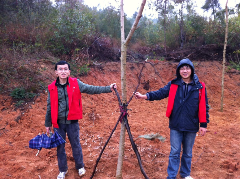 上午8:00从本部三家村广场出发,乘校车前往翔安校区,于9:50顺利抵达翔安校区。由于几天的雨水,正在施工的翔安校区非常泥泞。每三人成组之后,同学们便分工拿着工具、扛着凤凰木上山培植。找好点后,天降瑞雨,更加激发了同学们的热情。大家用心尽力地用铁锄和铁锹挖出合适的坑,合作扶苗、填土、浇水,将自己份内的凤凰木种植好。特别地,09级本科生柏彬和高光银两位同学担心合作种好的凤凰木枝干太细弱,恐不经风雨,特地找来三支枯树干,将其固定。最终在所有参与者的积极协助,通力合作之下,圆满完成了此次翔安校区植树活动。直至返程,同学们仍旧余兴未消。