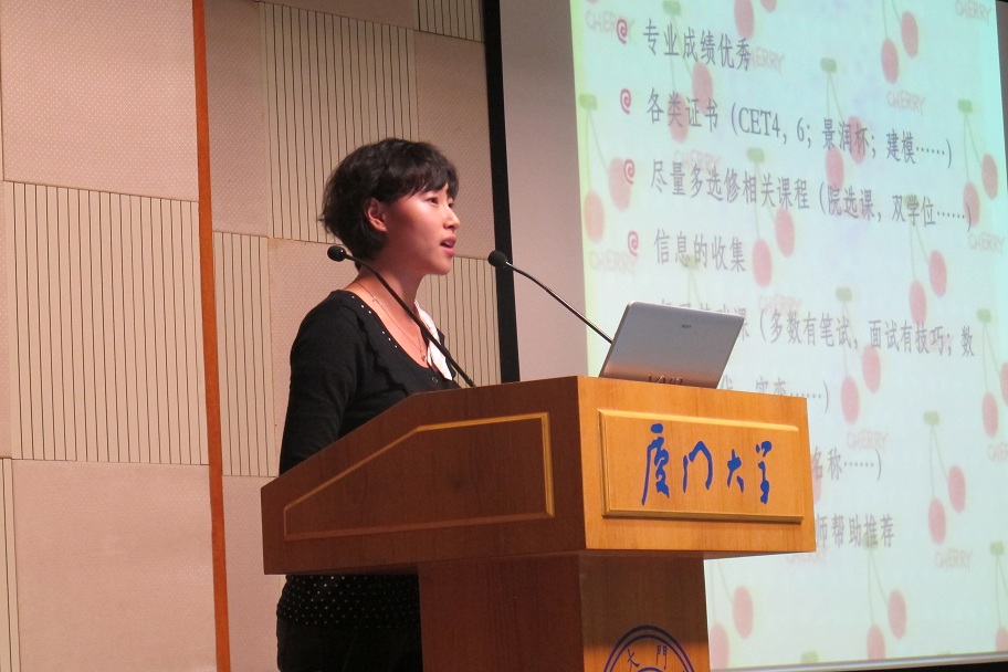 首先发言的08级国奖获得者李世泽学长一周前便广泛询问学弟学妹们有什么问题,做了精心准备。学长介绍的出国准备经验、国外交流体会和英语考试准备方法,让大家获益匪浅。08级方宇翔学长则是在保研条件、夏令营选拔、08级保送情况、保研申请技巧等方面对保研进行了详细介绍。随后,保送至中国科学院应用数学所的08级何盼学姐讲述了自己大一大二酸甜苦辣的亲身体验和保送经历,诙谐幽默的语言引起大家的阵阵笑声与掌声。