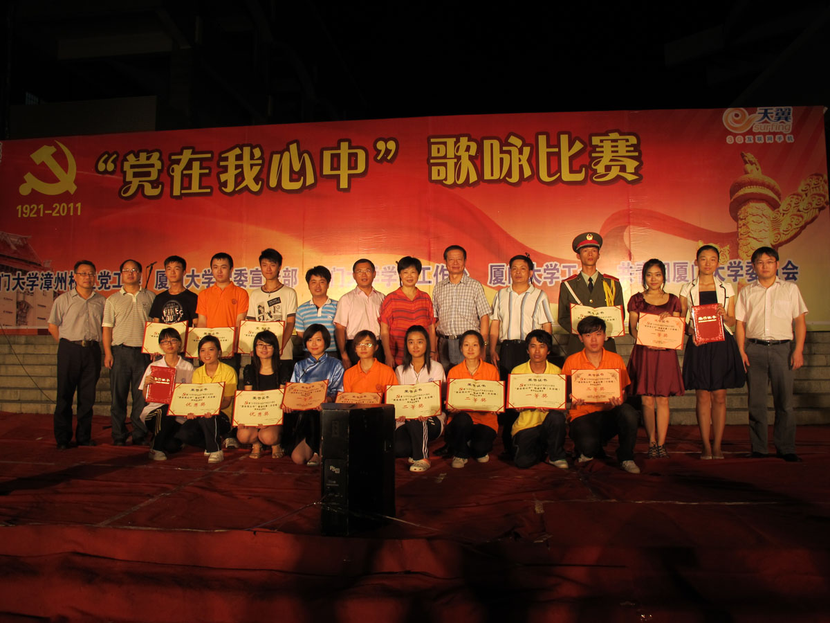 6月29日晚7点,厦门大学“党在我心中”歌咏比赛决赛在漳州校区北区步行广场上隆重举行,此次决赛分小组唱和大合唱两部分进行。院团委副书记杨机像来到现场为同学们加油,最终由我院与国际关系学院联合组成的代表队在大合唱比赛中以9.476的最后得分获得三等奖。